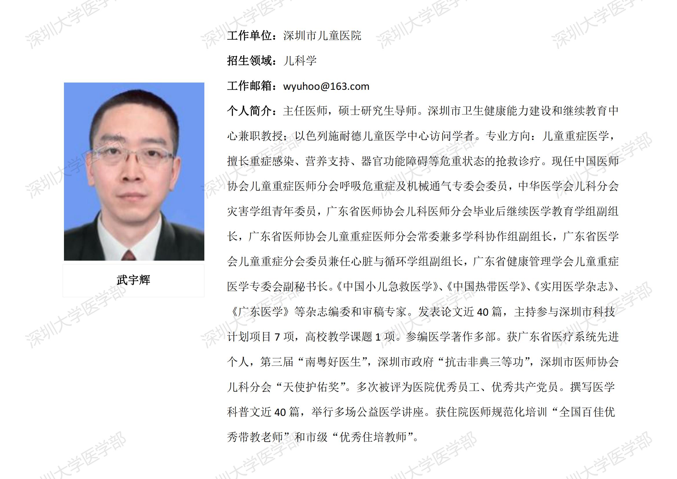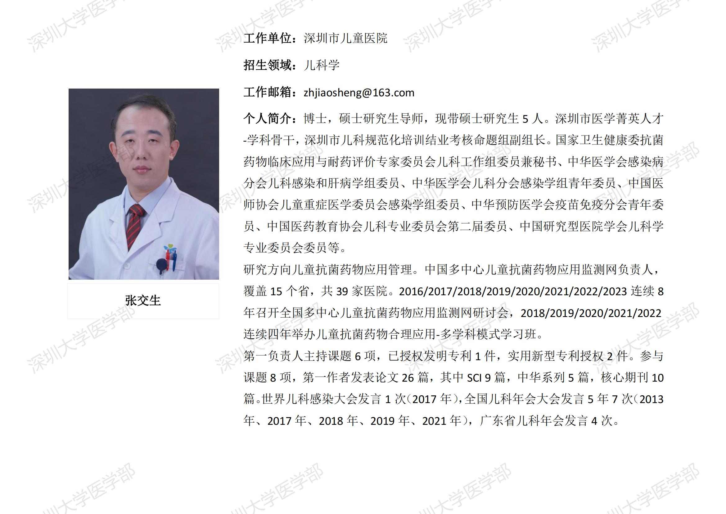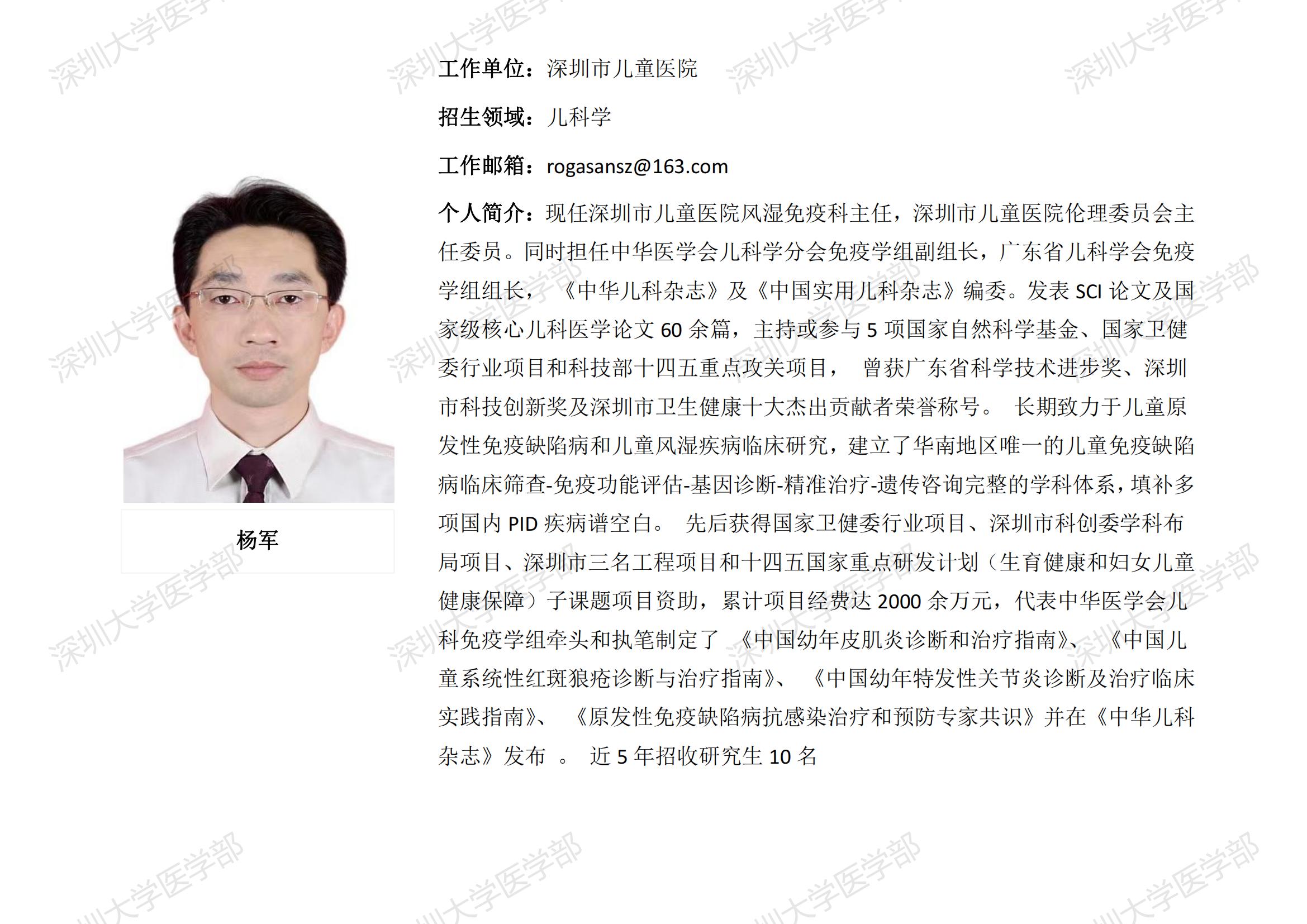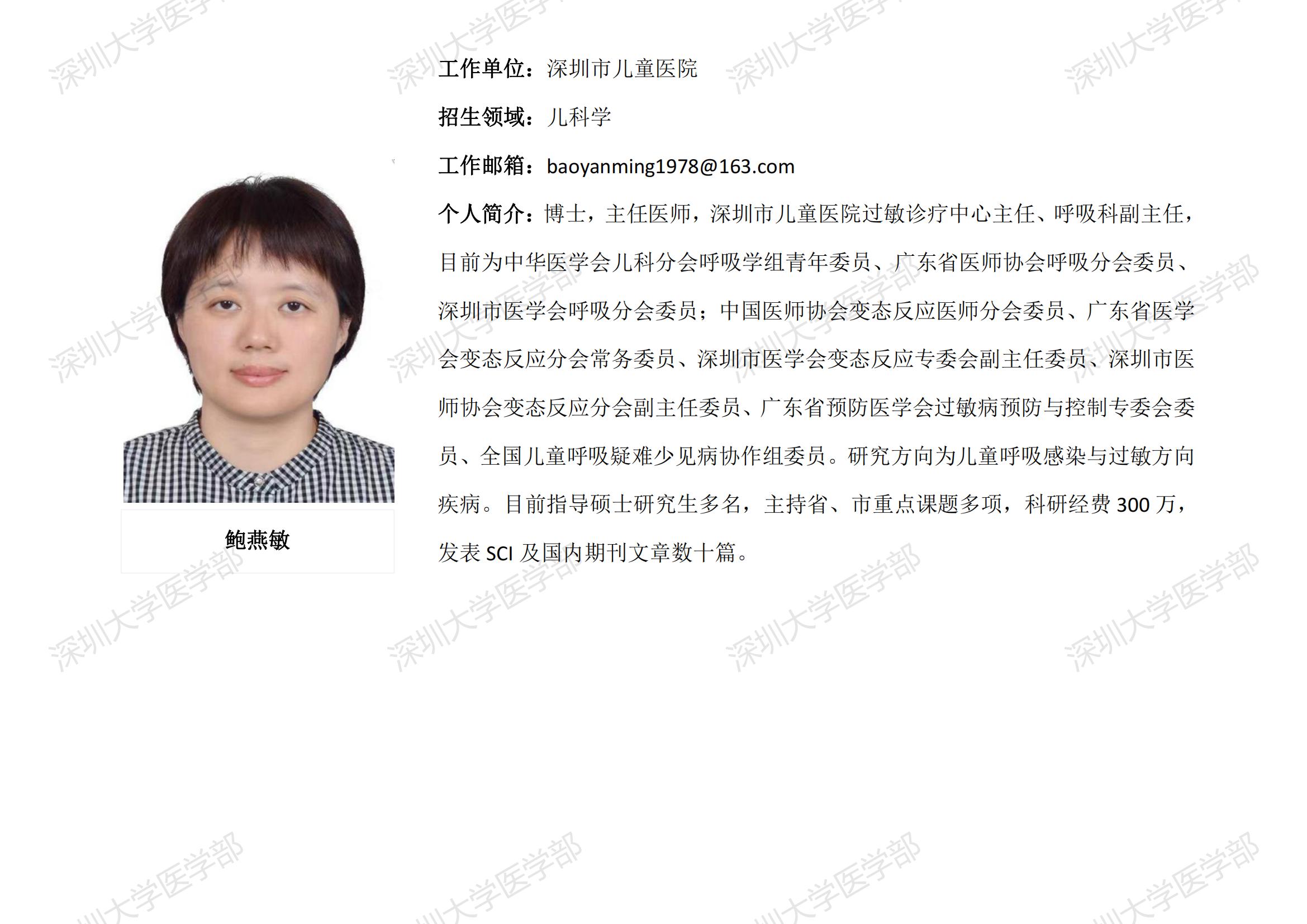 JVID 临床医学专业硕士研究生导师简介--深圳市儿童医院