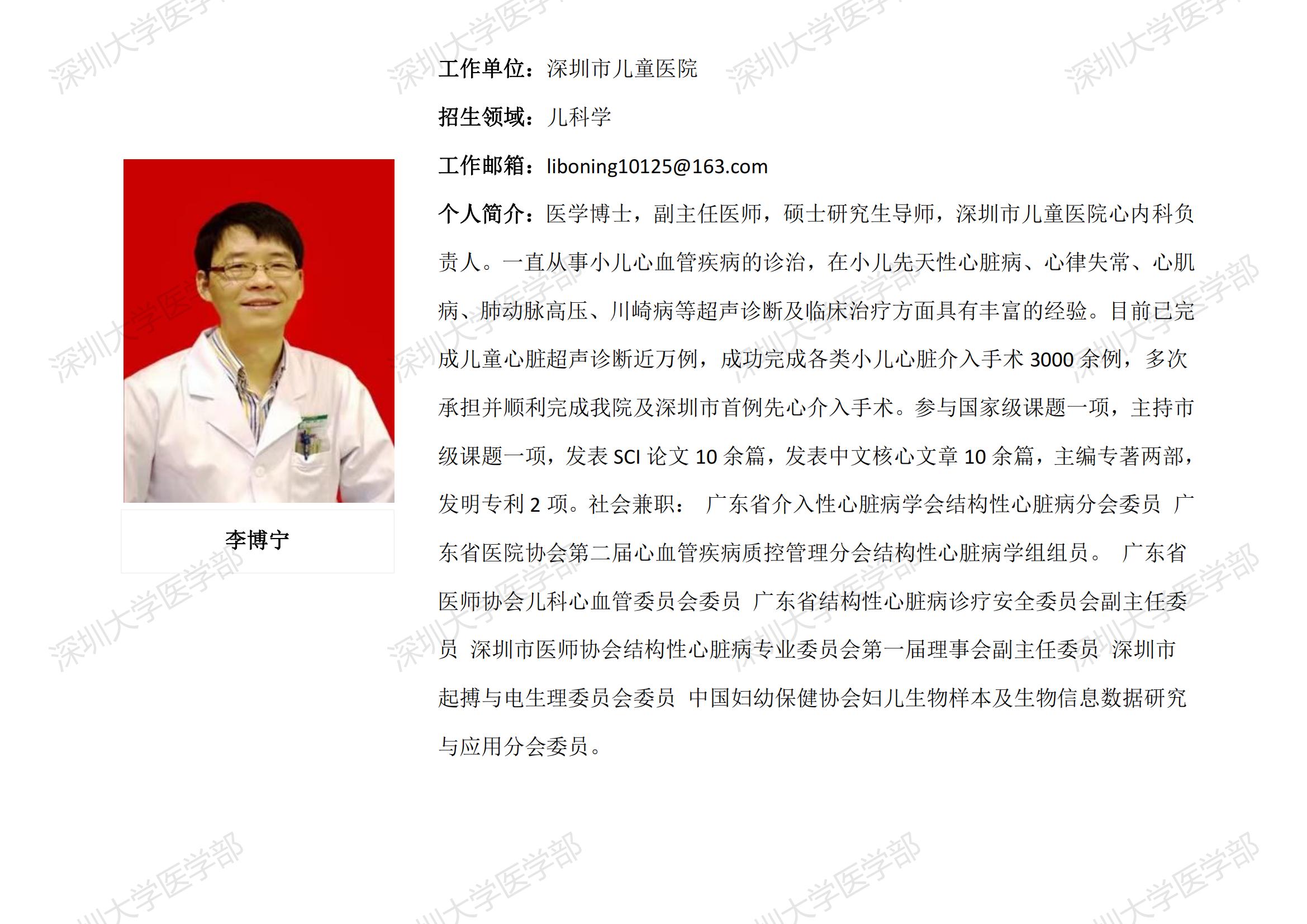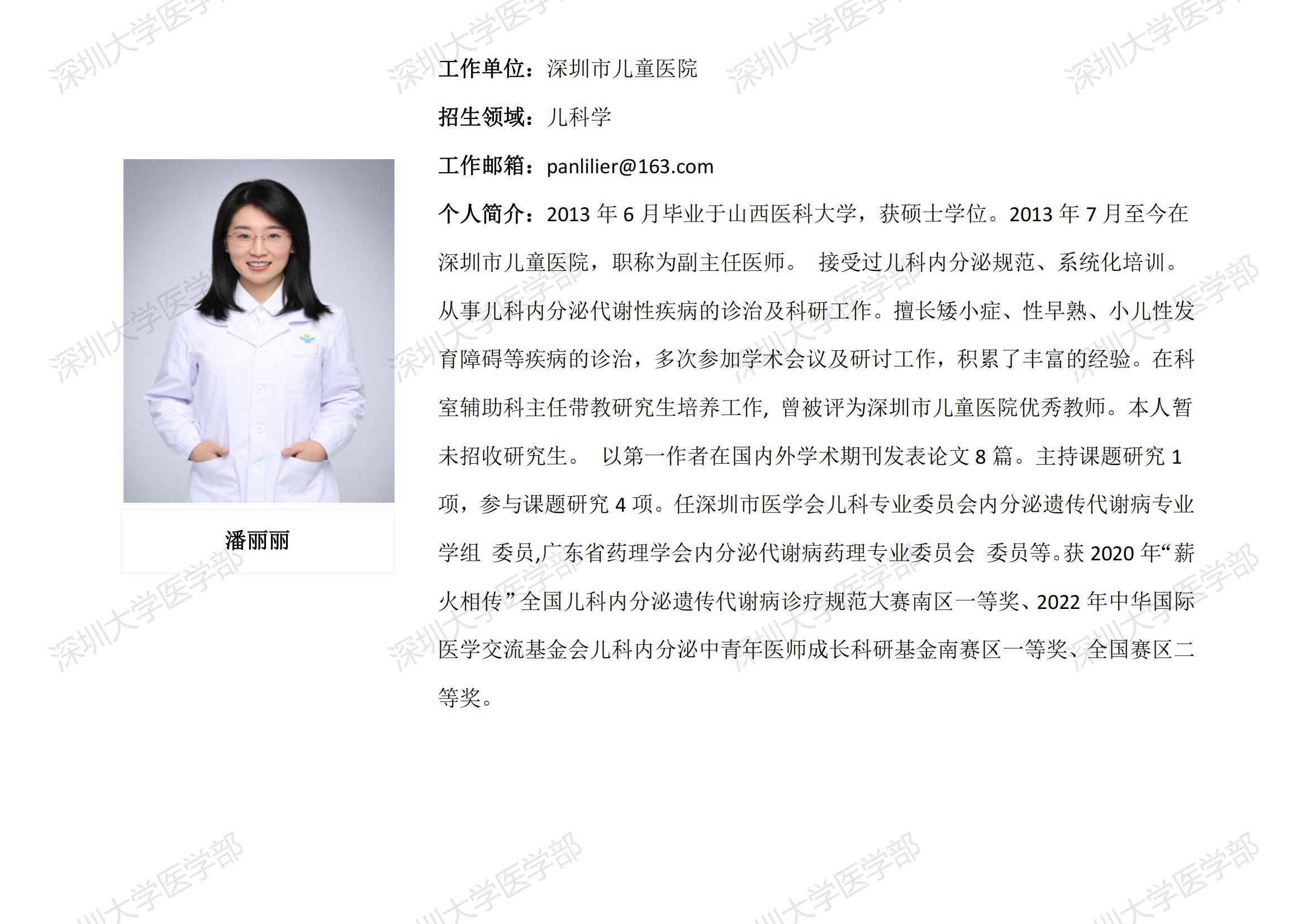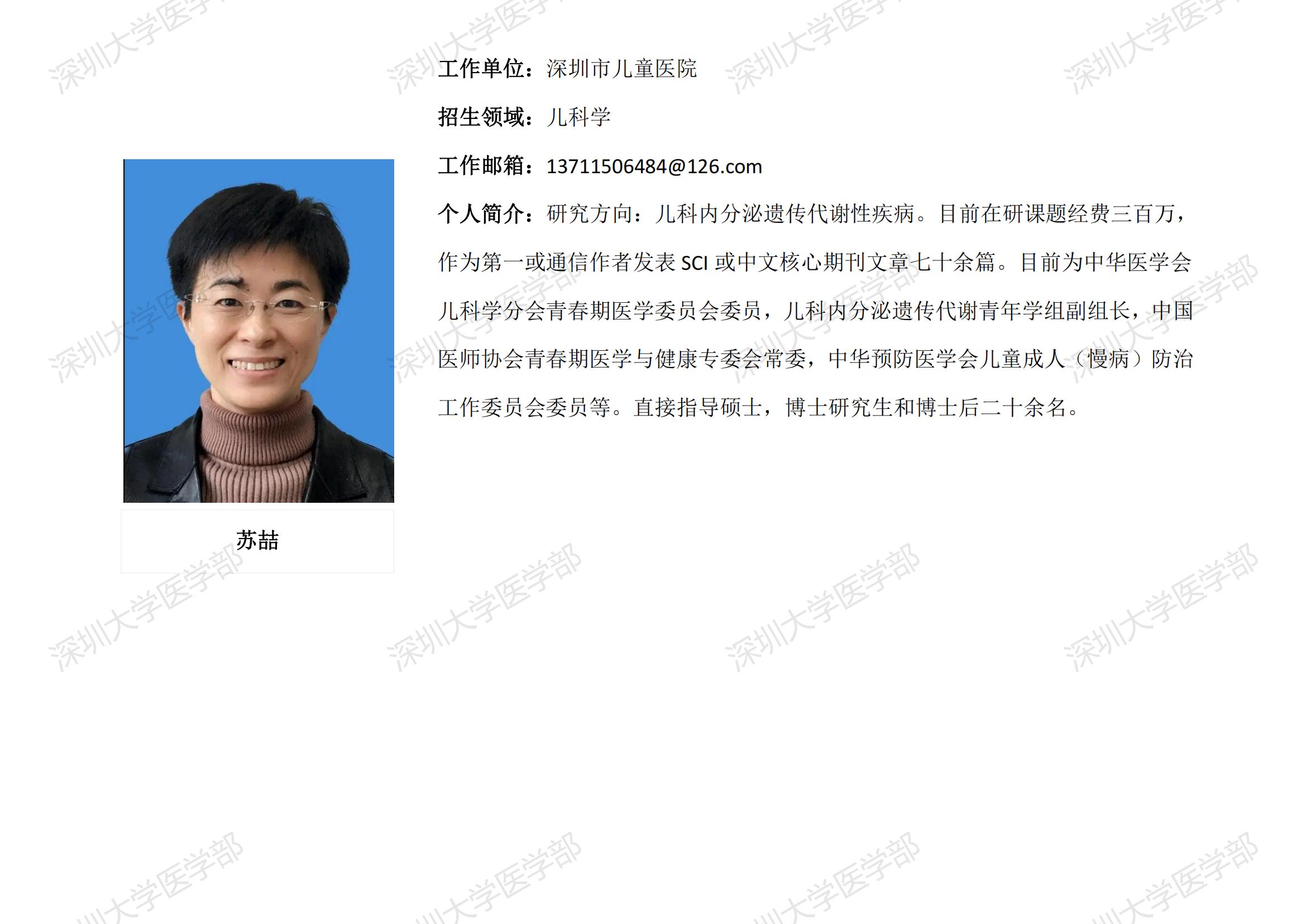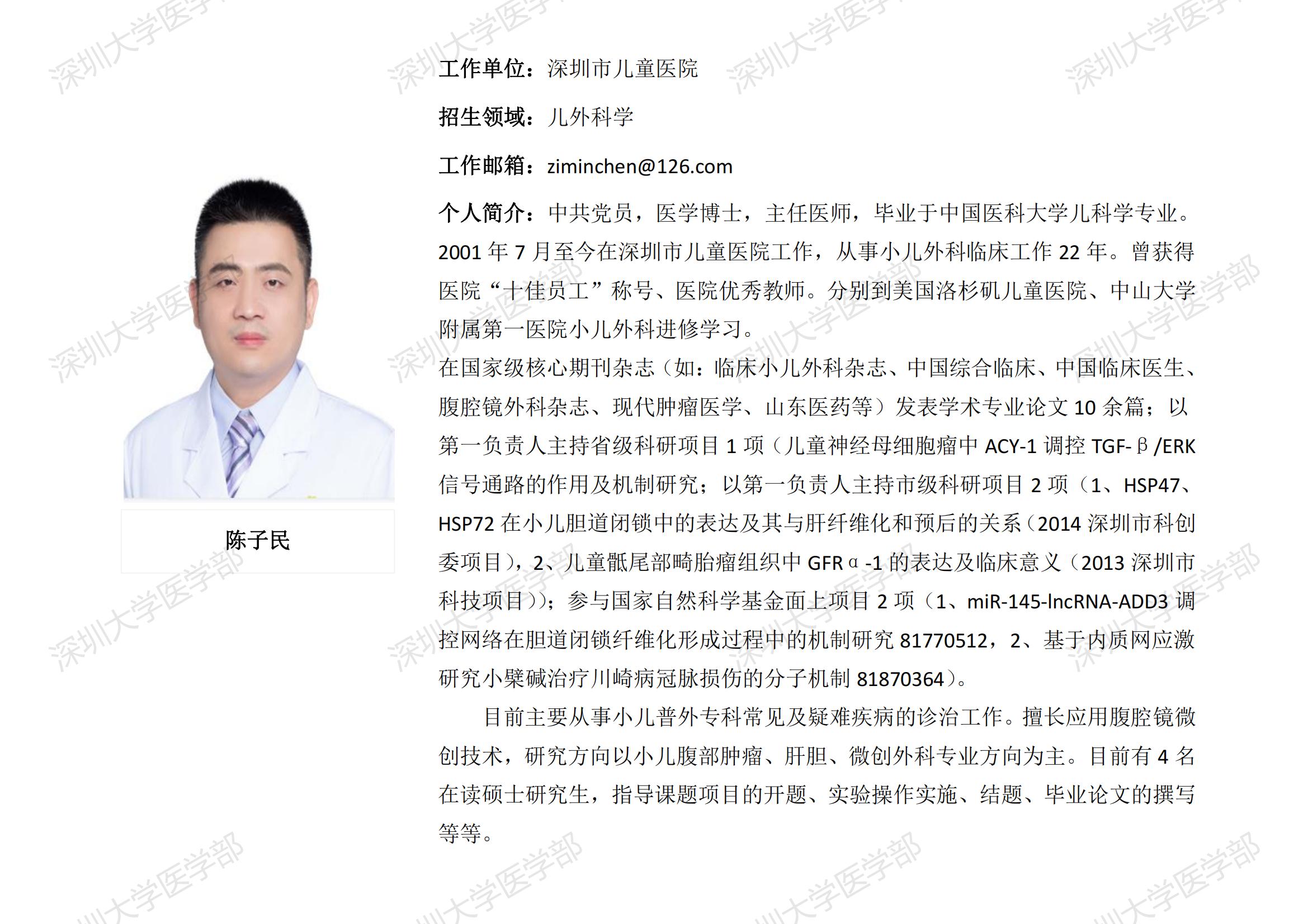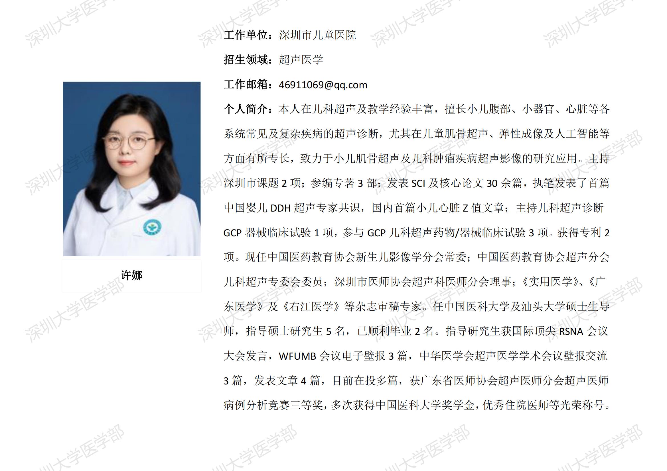 JVID 临床医学专业硕士研究生导师简介--深圳市儿童医院