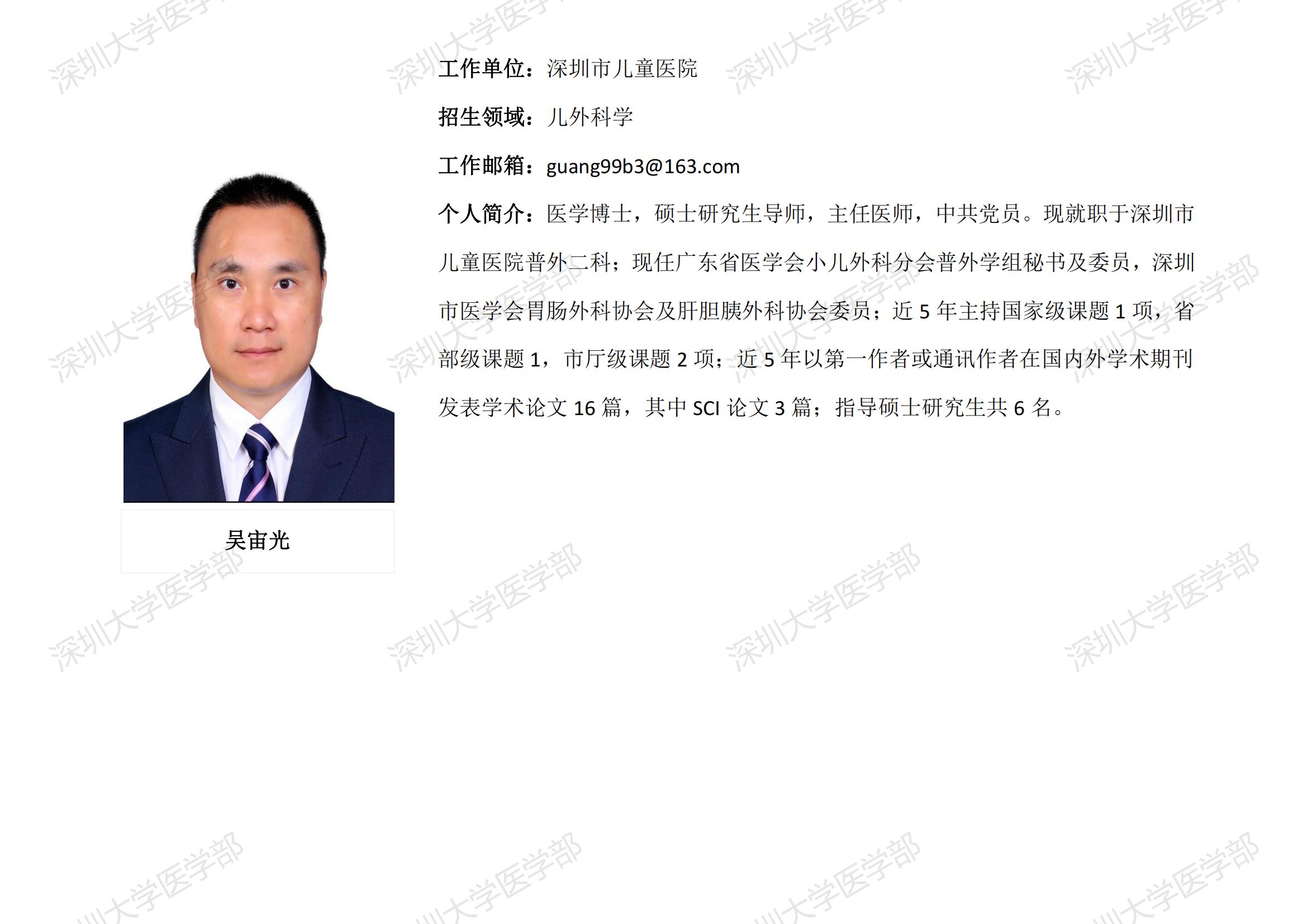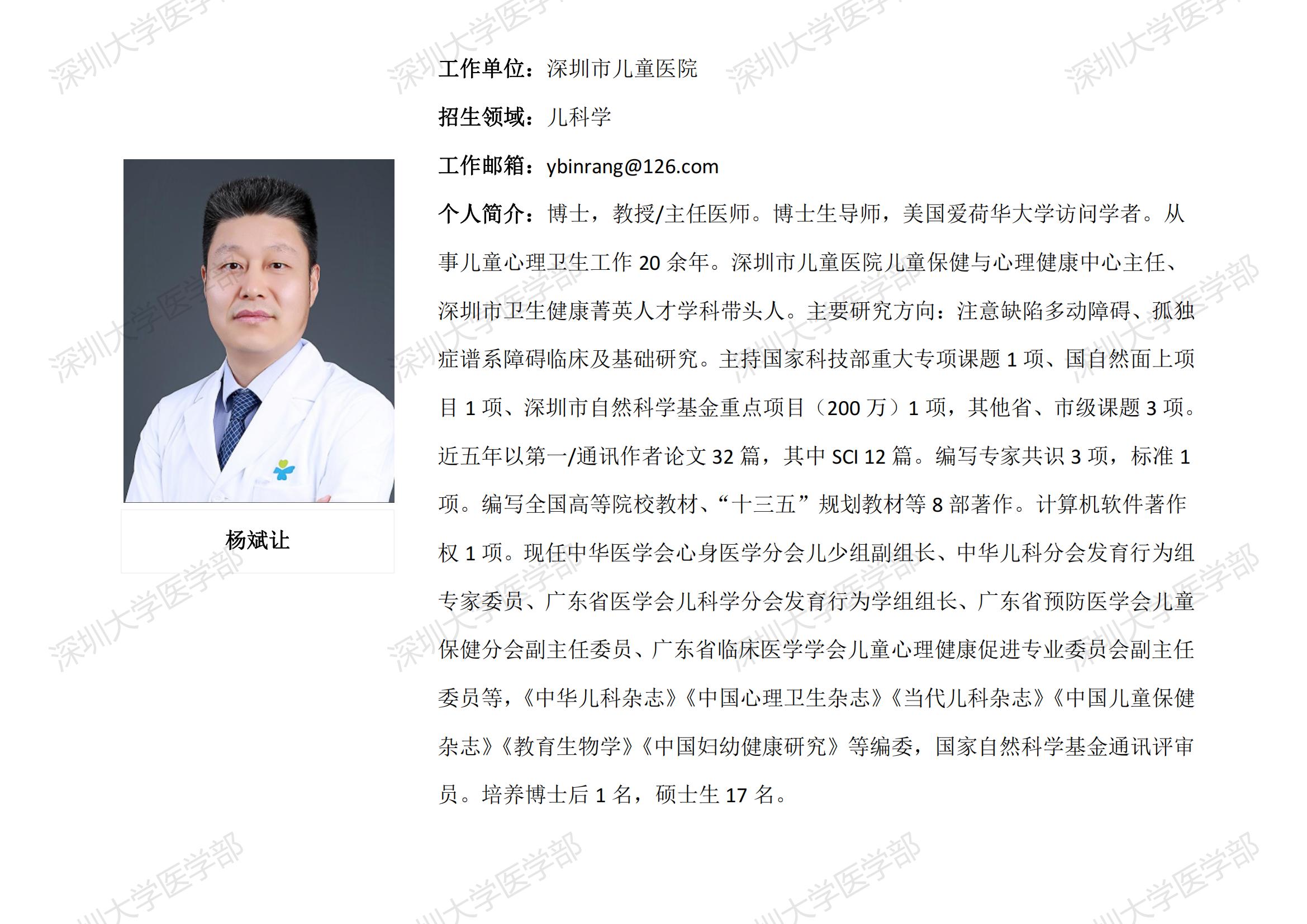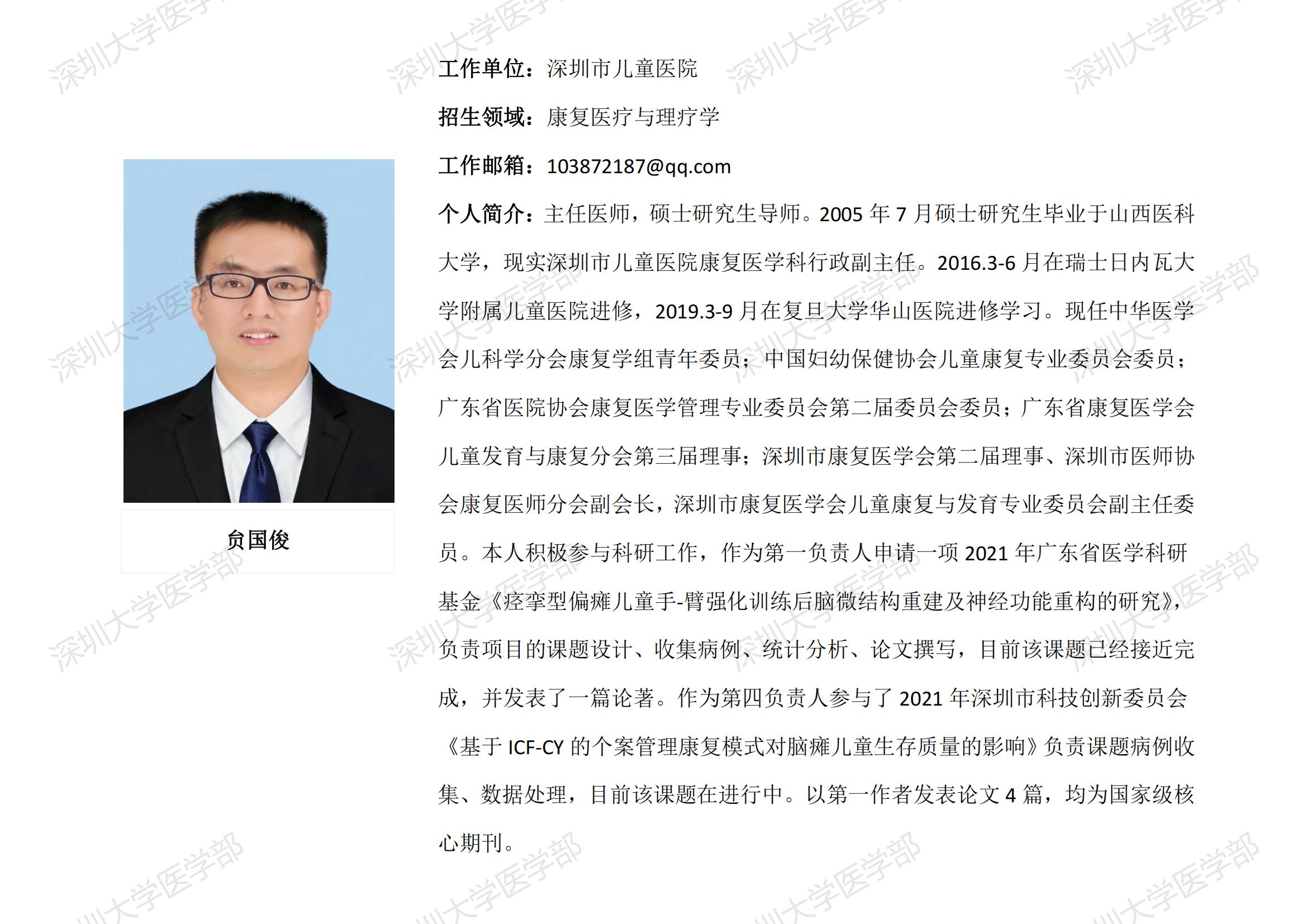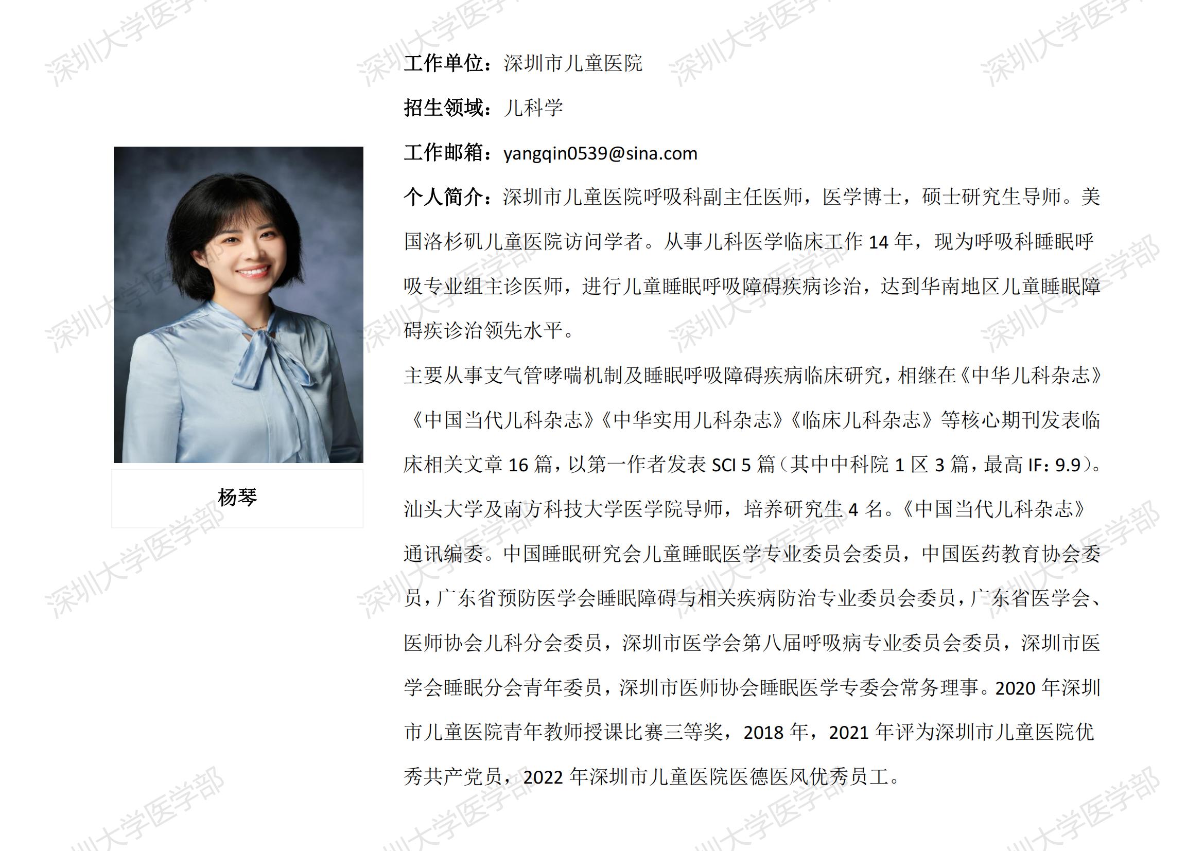 JVID 临床医学专业硕士研究生导师简介--深圳市儿童医院