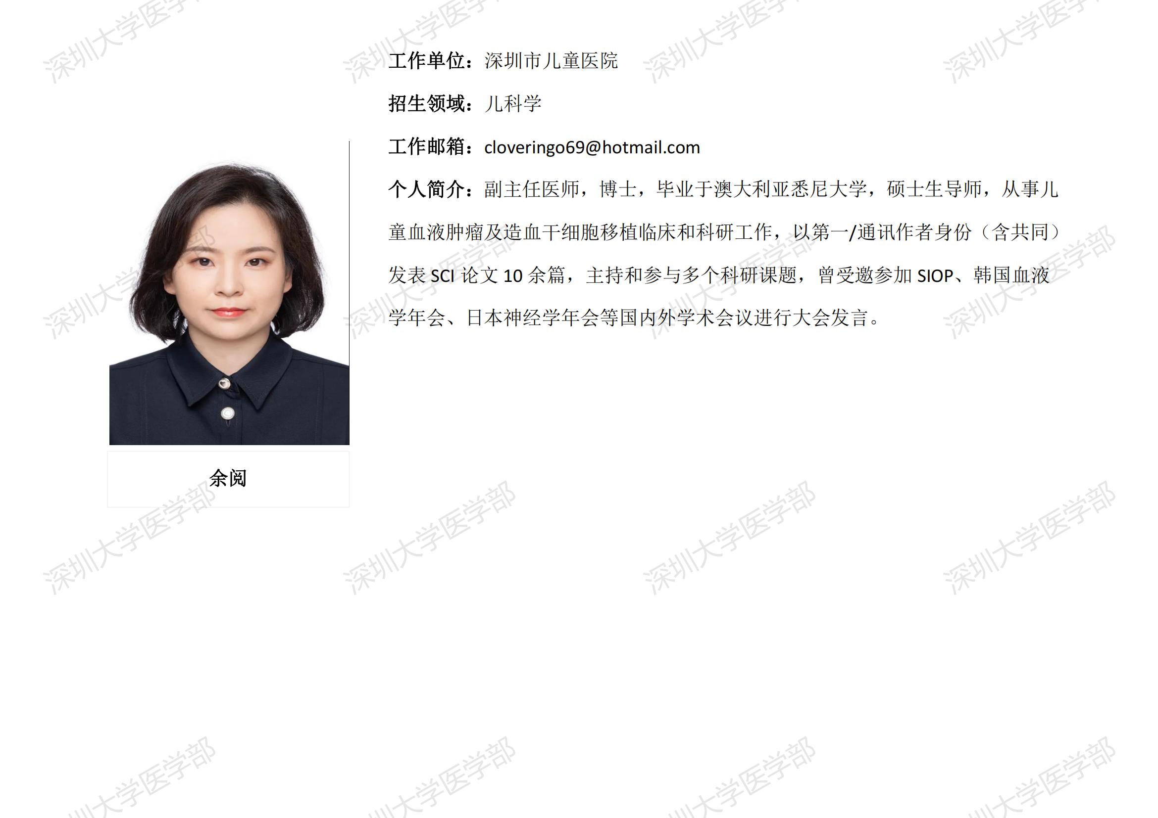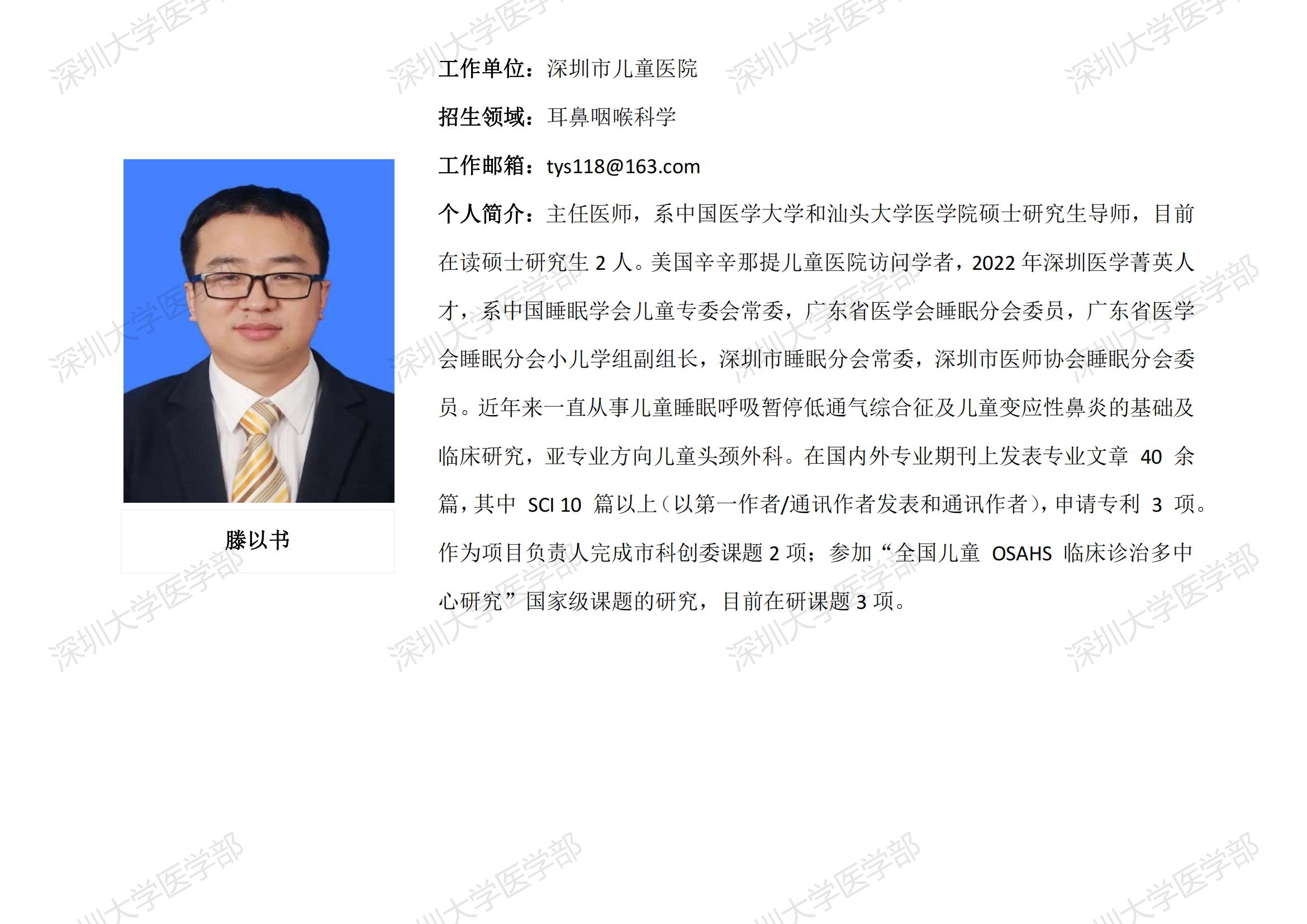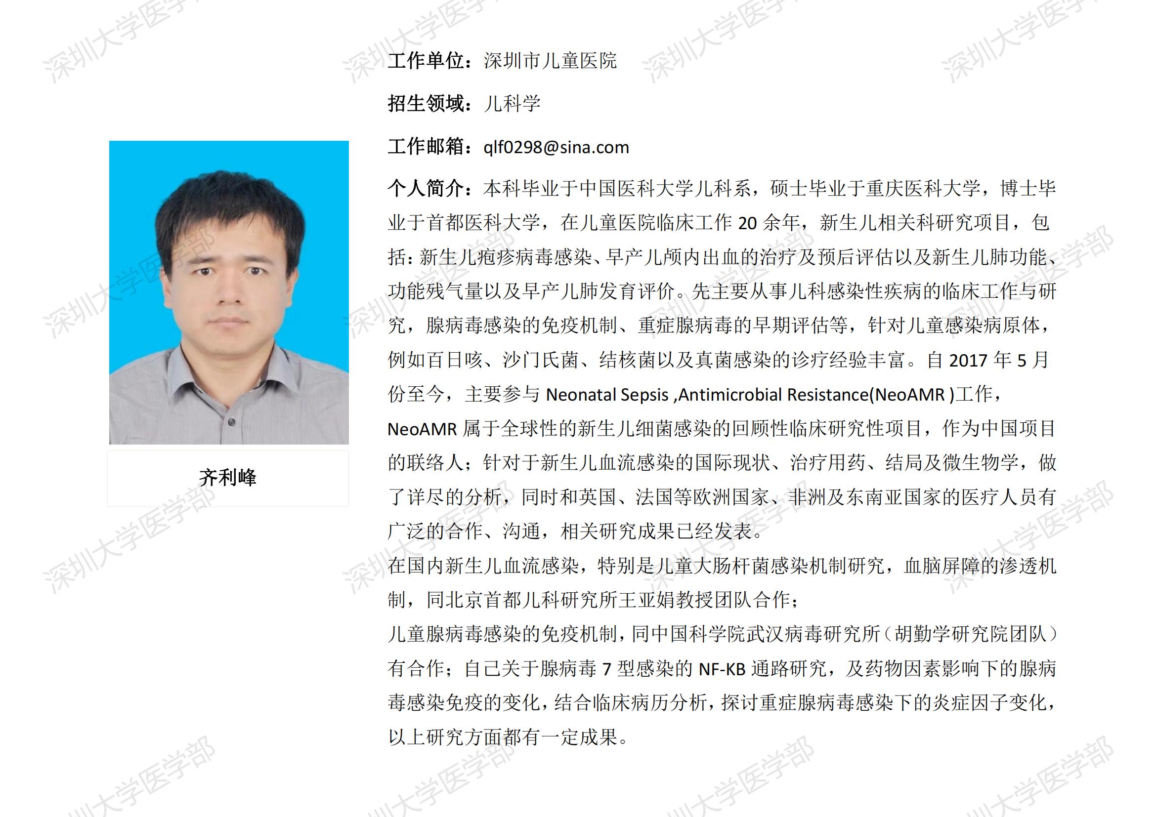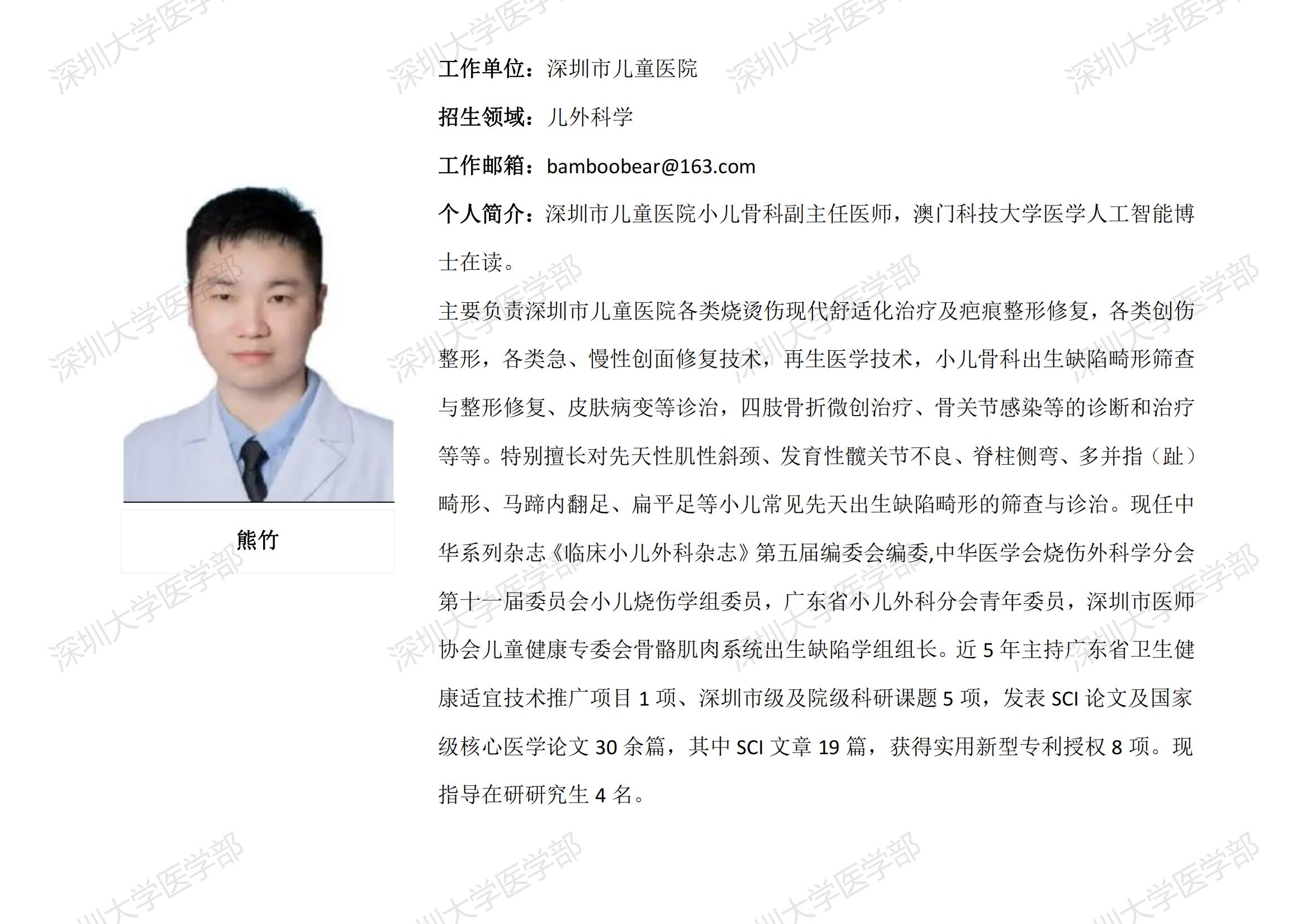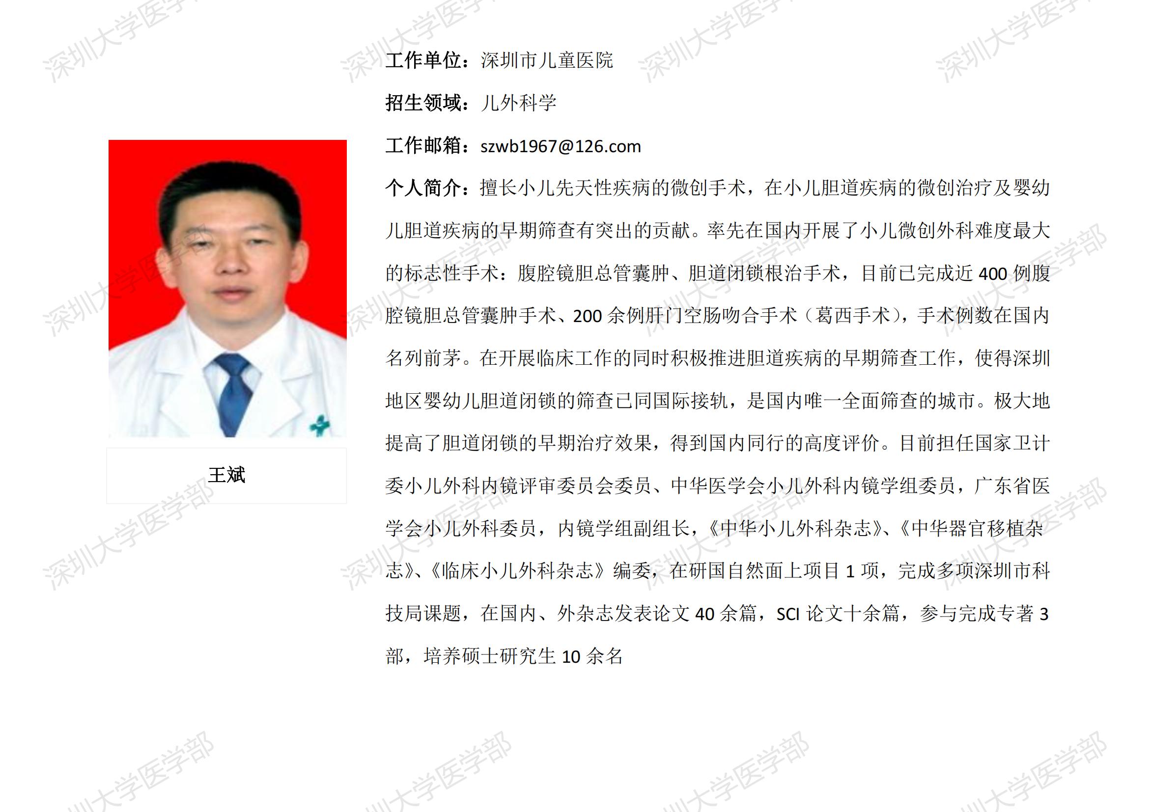 JVID 临床医学专业硕士研究生导师简介--深圳市儿童医院