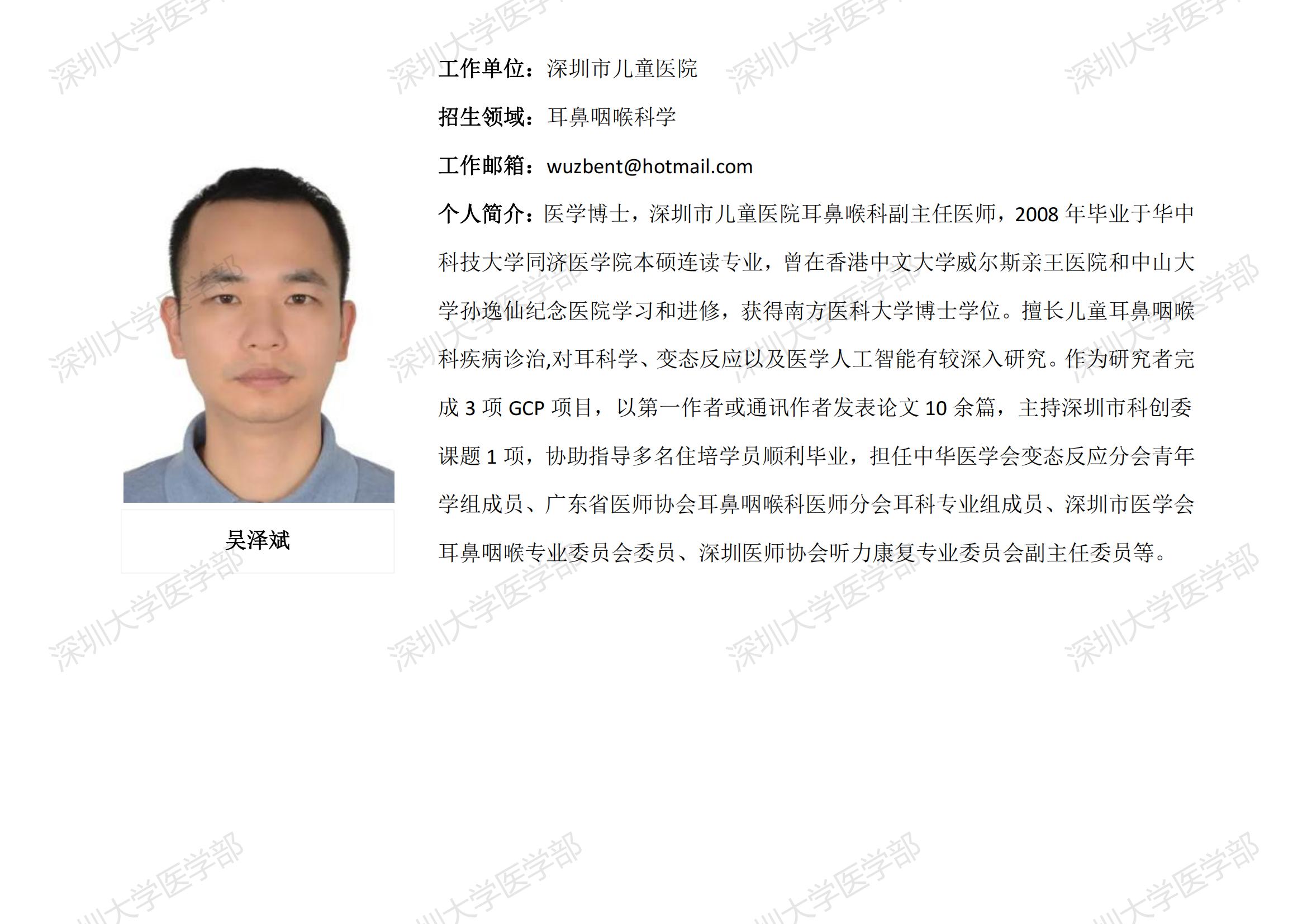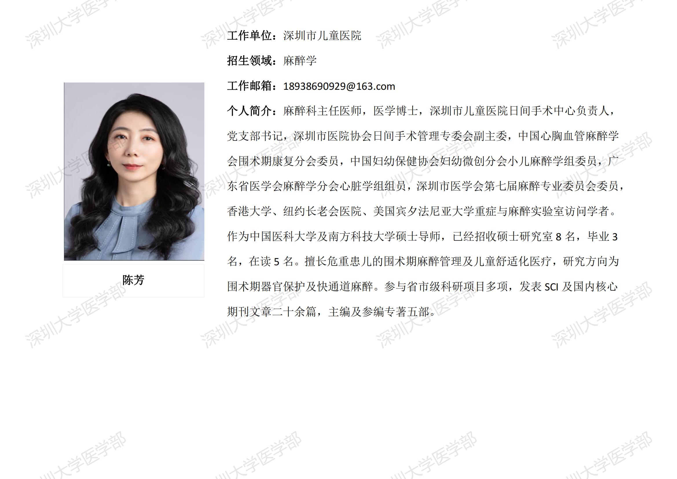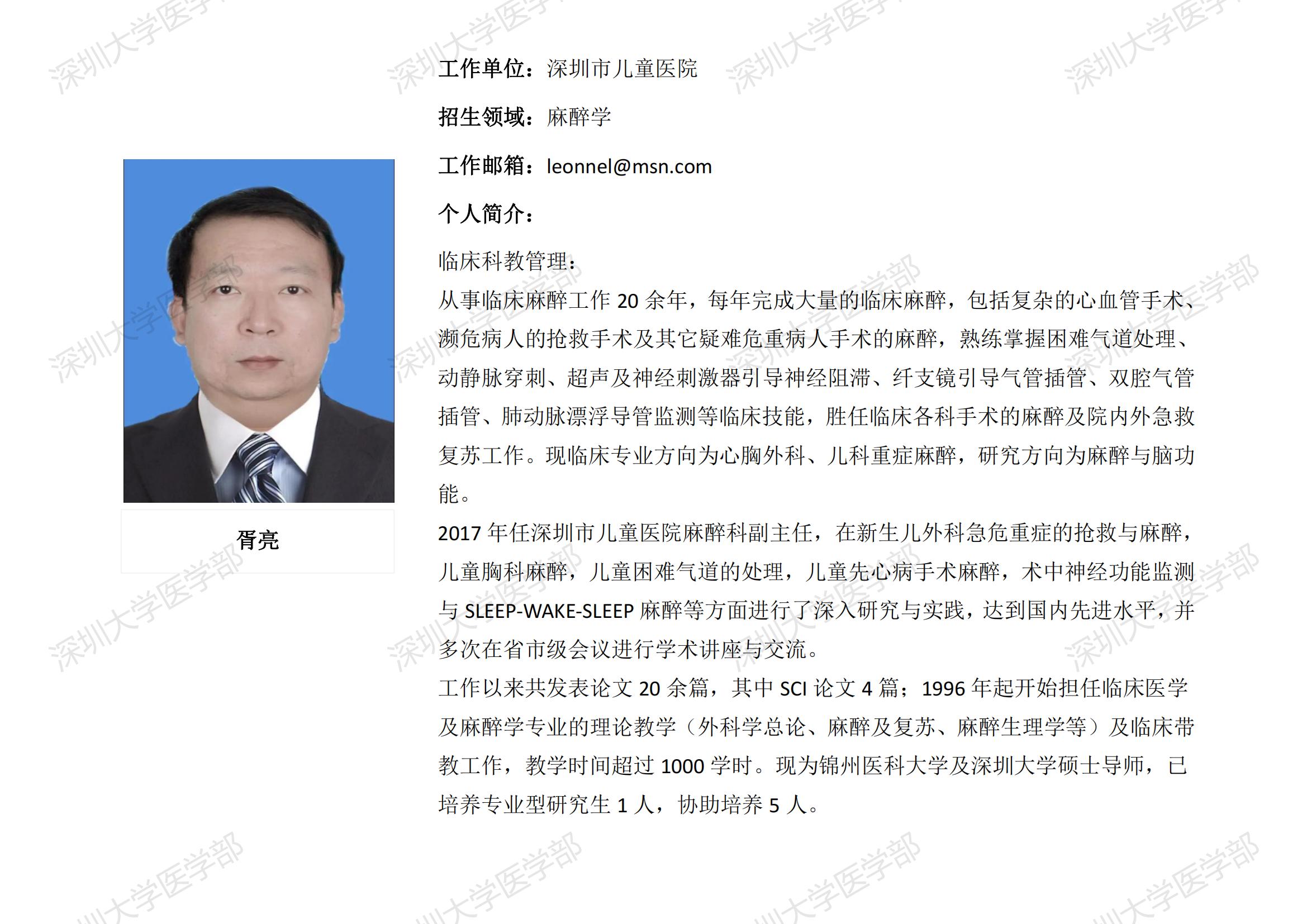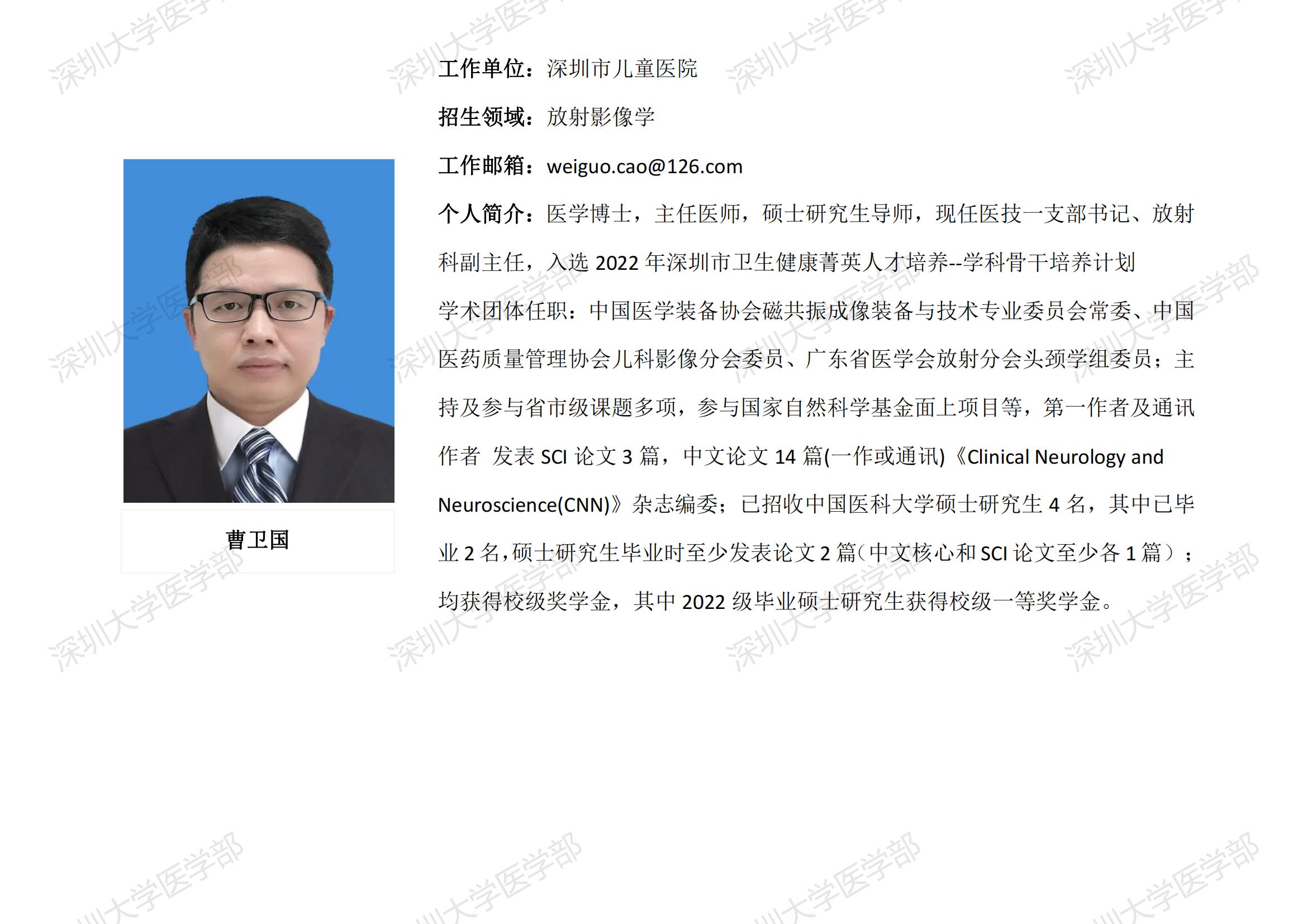 JVID 临床医学专业硕士研究生导师简介--深圳市儿童医院