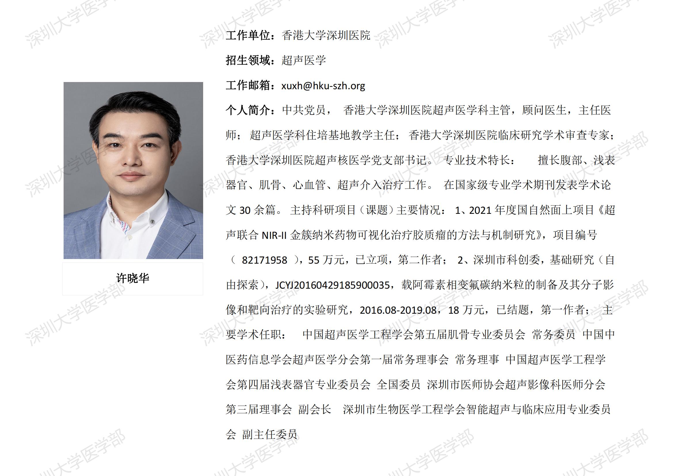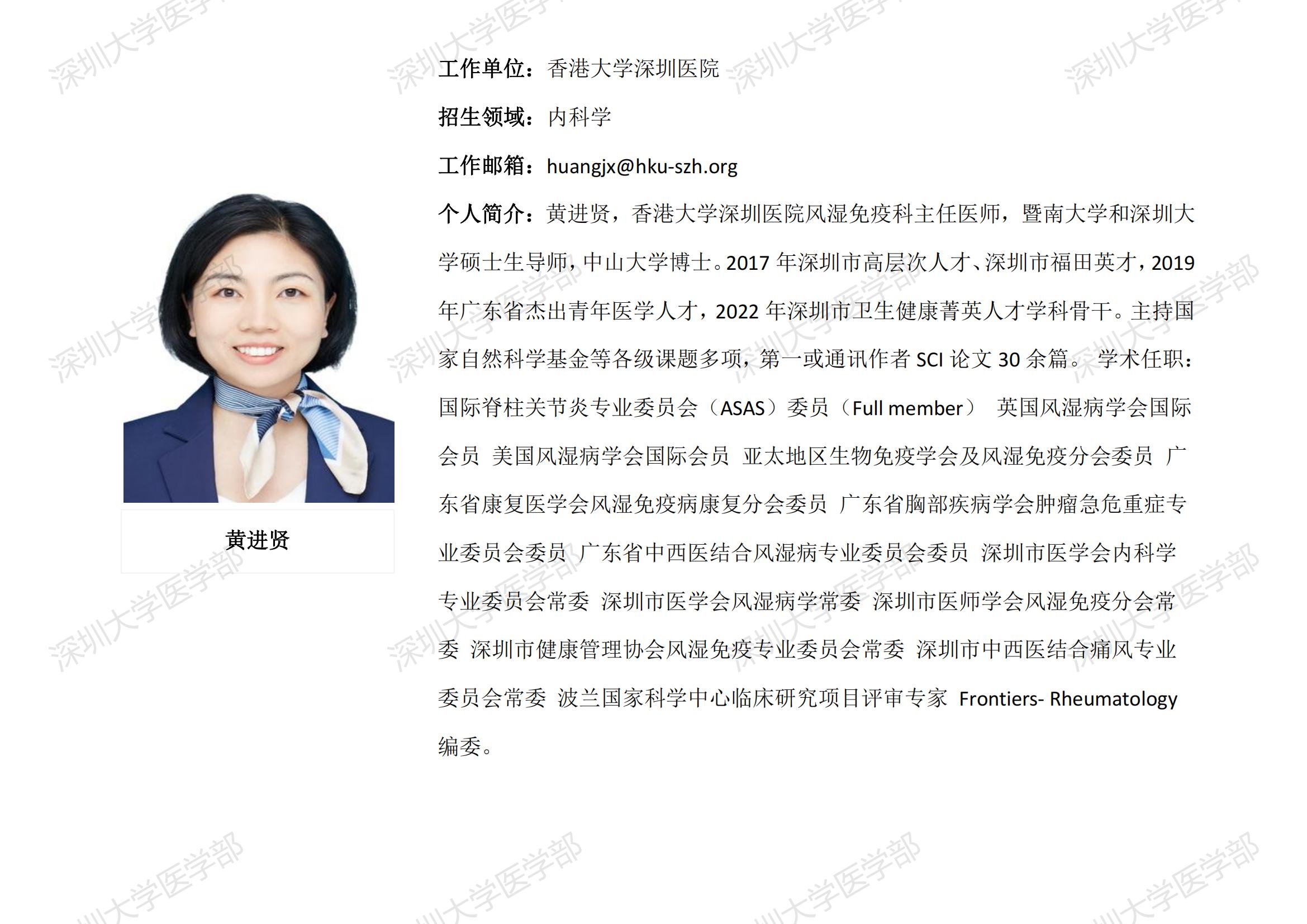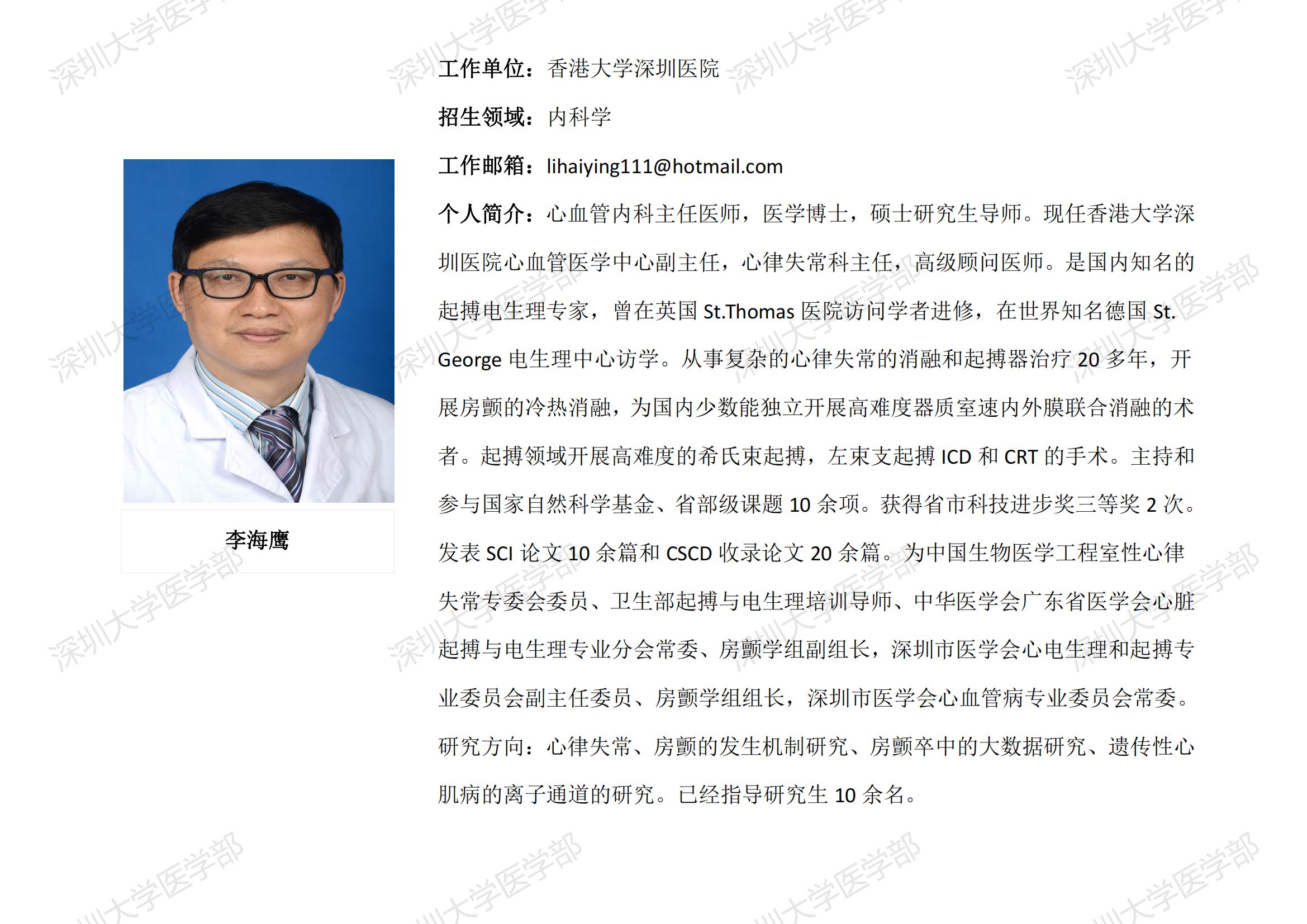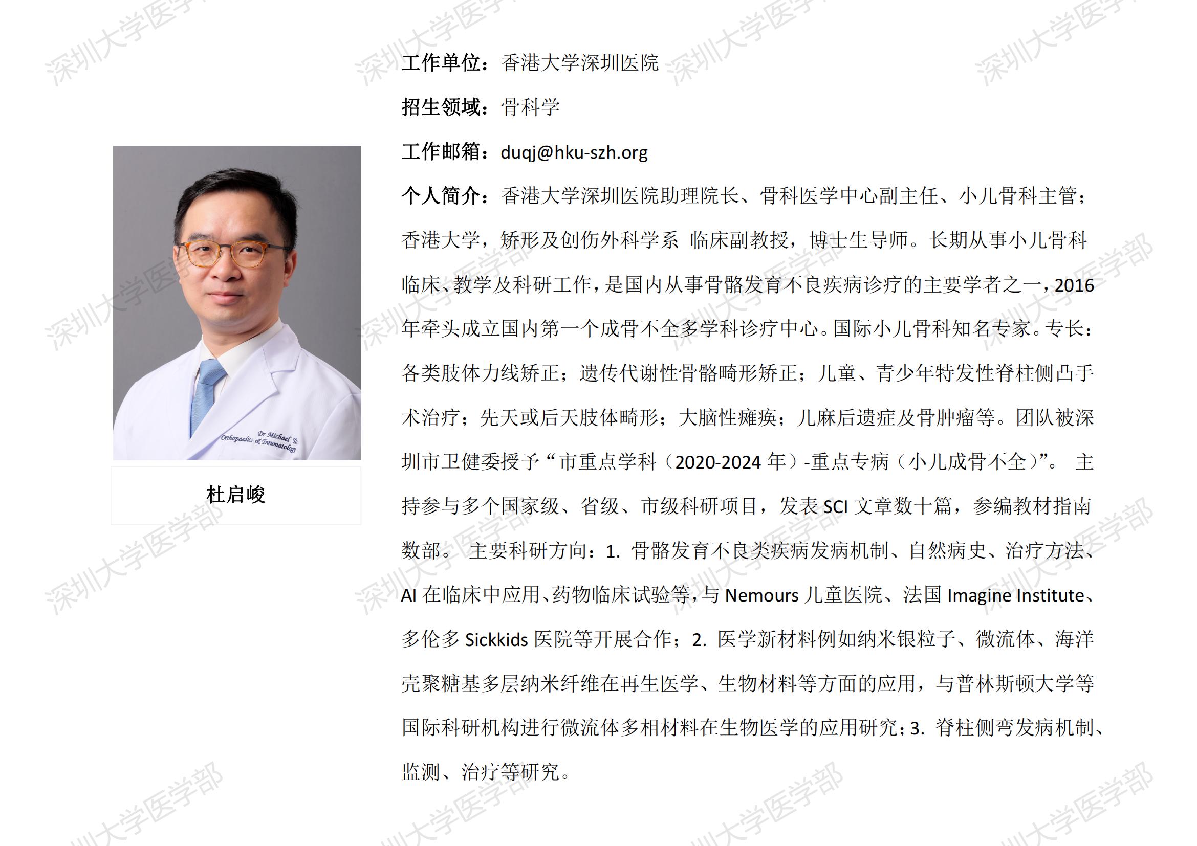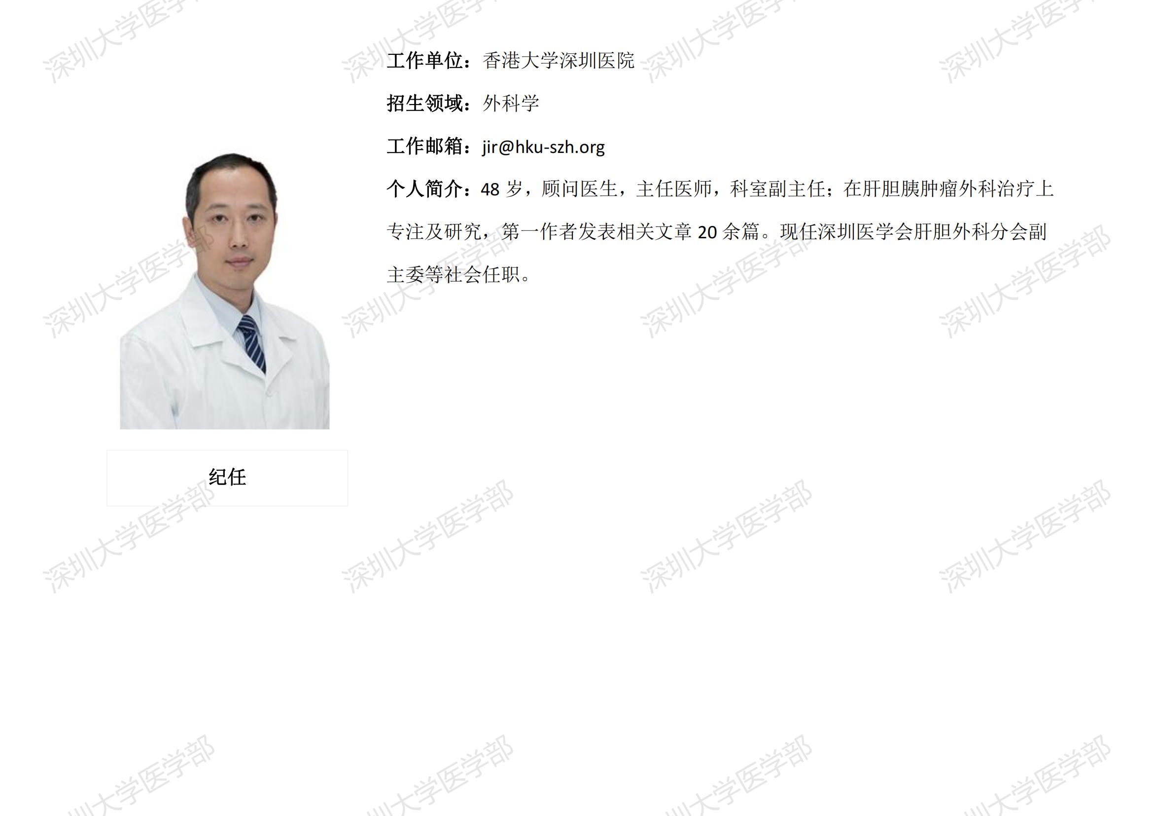 JVID 临床医学专业硕士研究生导师简介--香港大学深圳医院