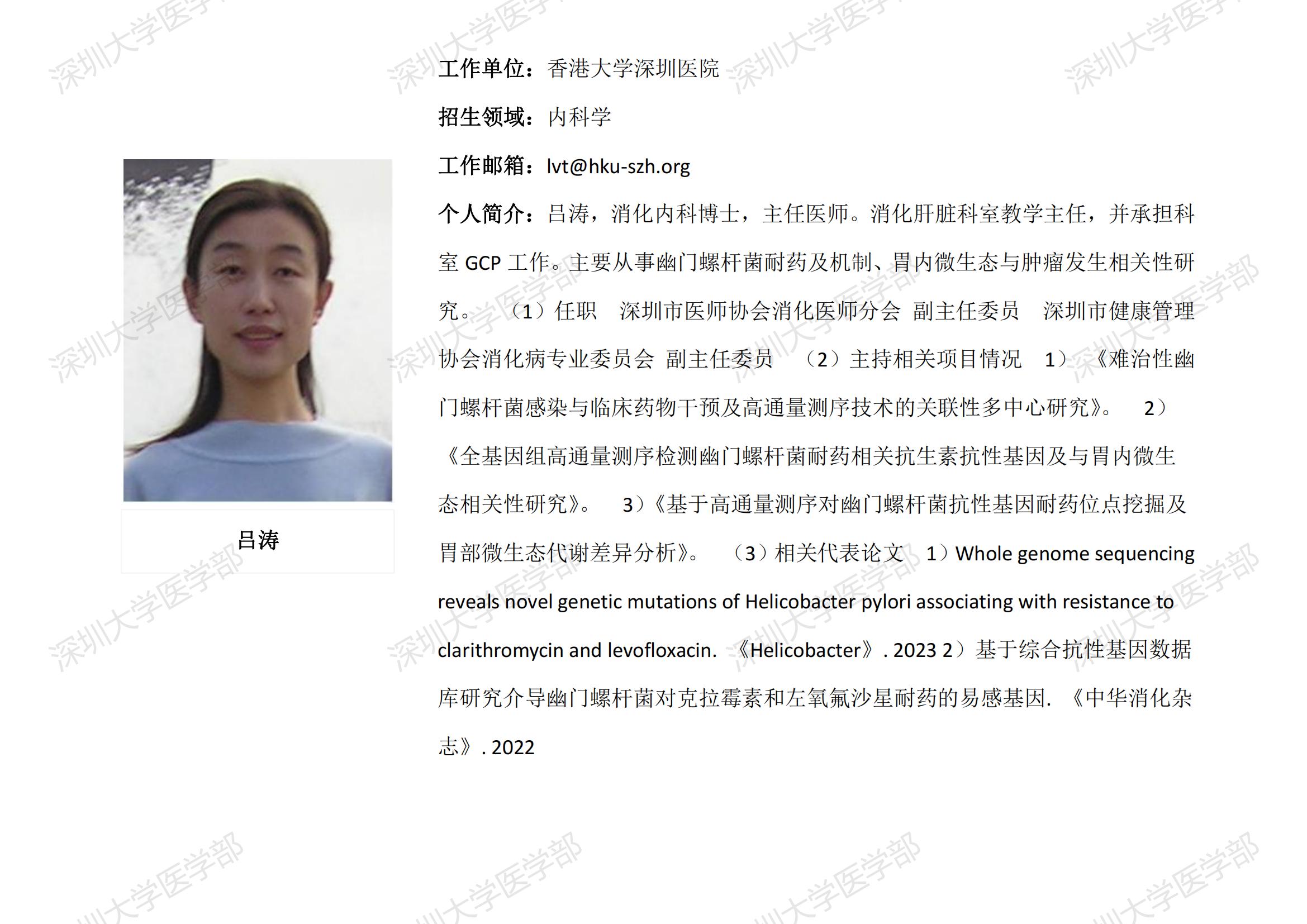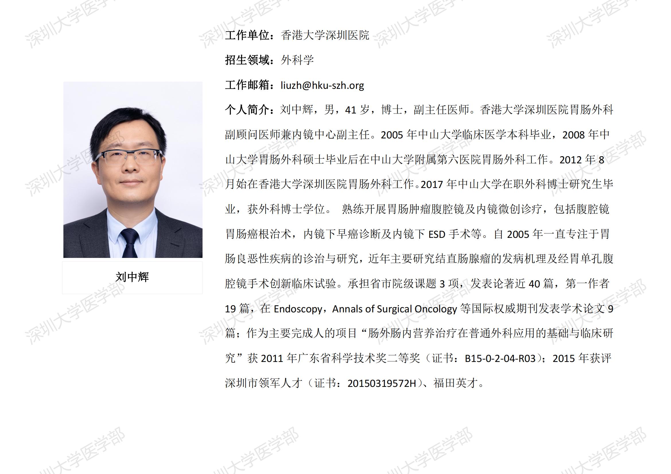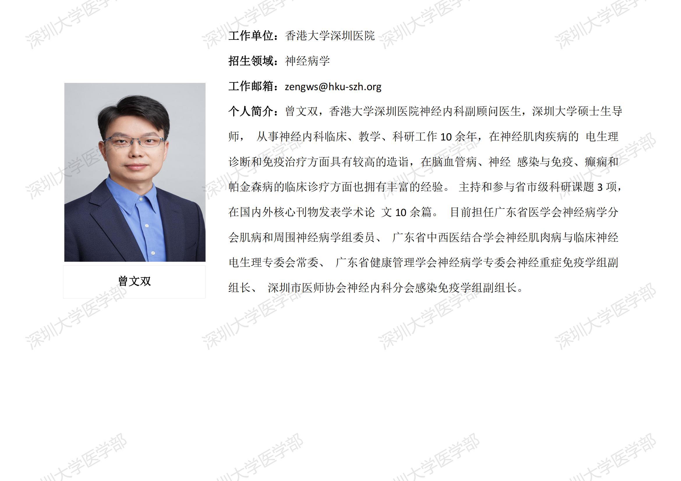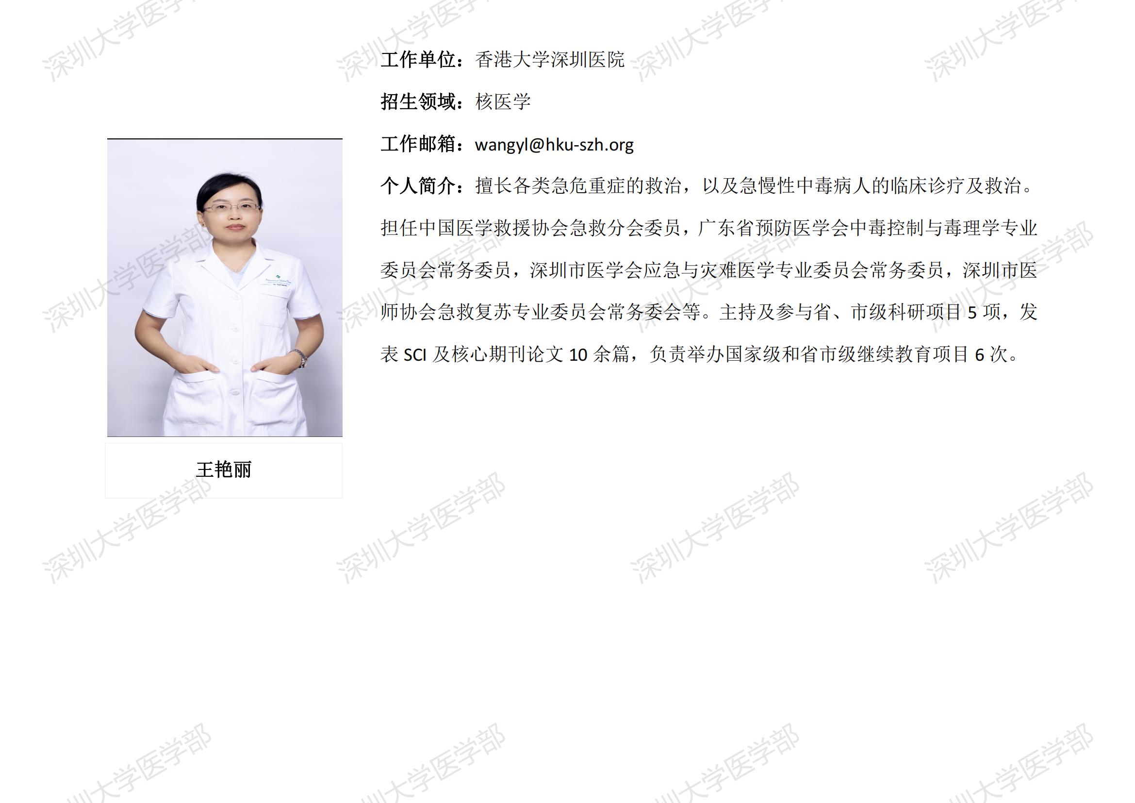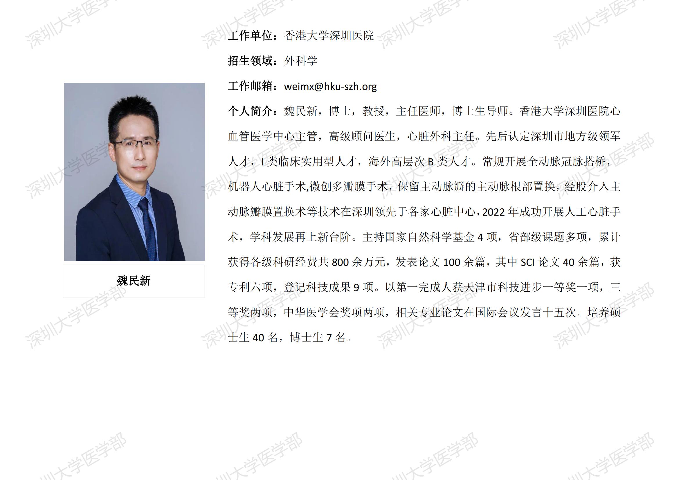 JVID 临床医学专业硕士研究生导师简介--香港大学深圳医院