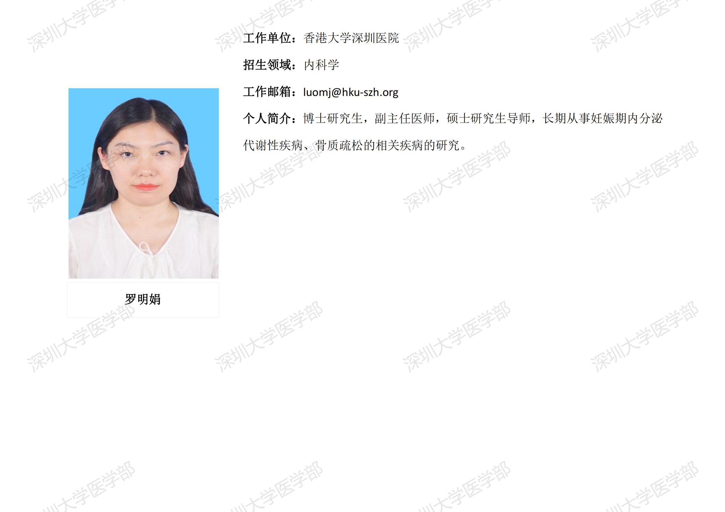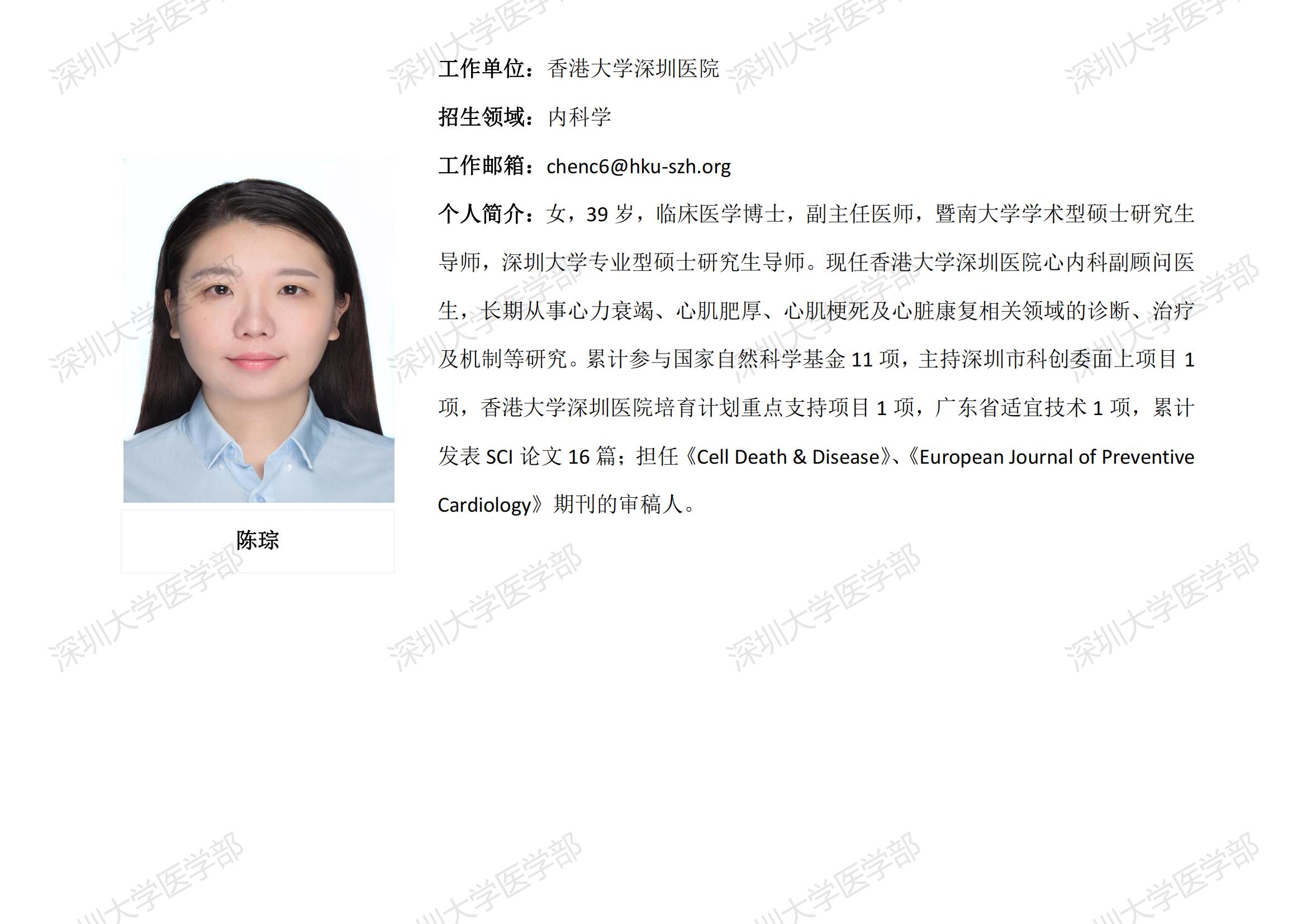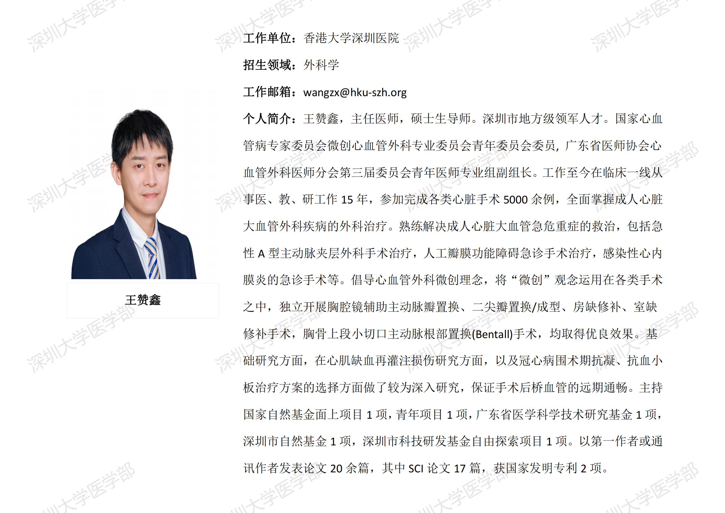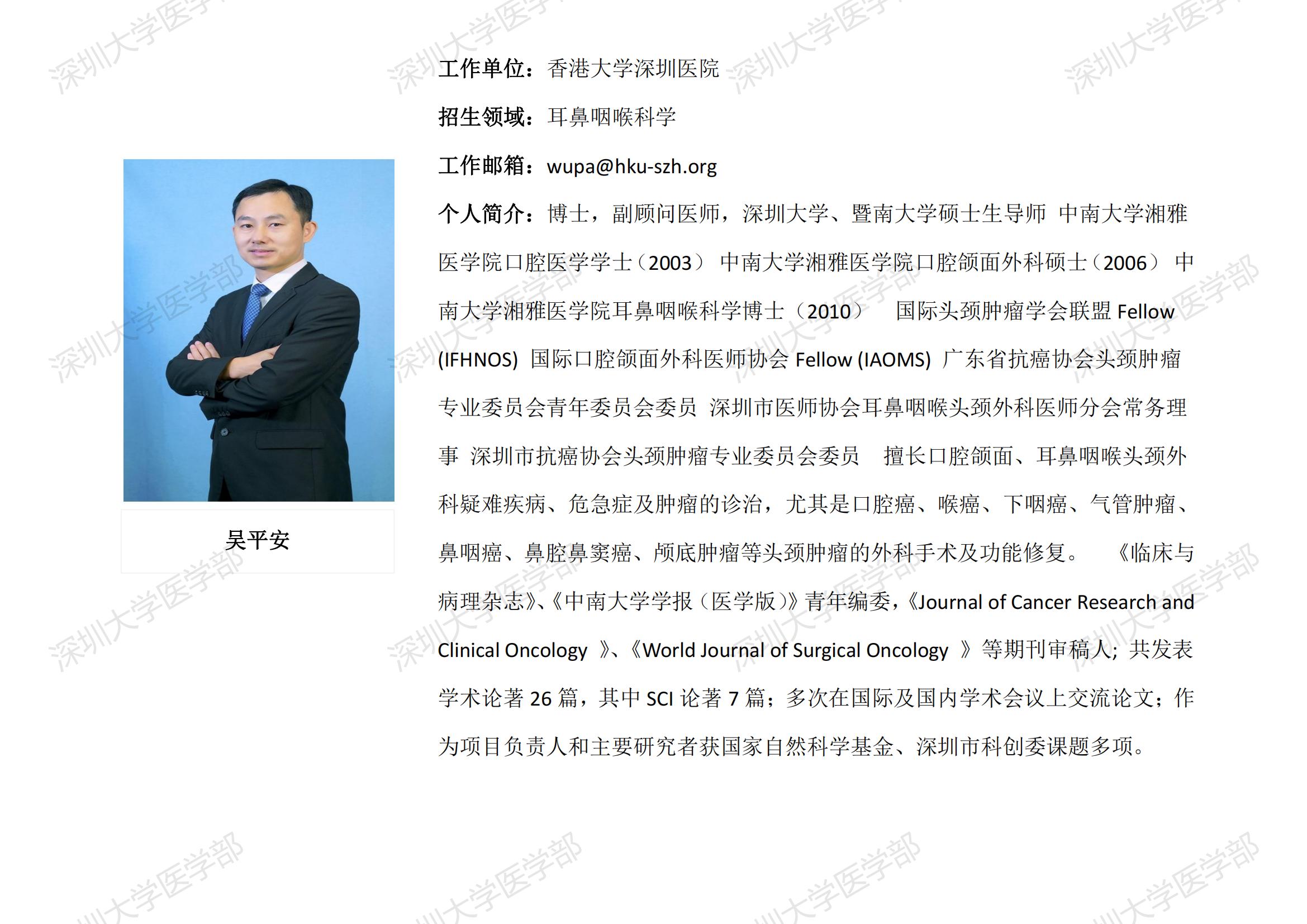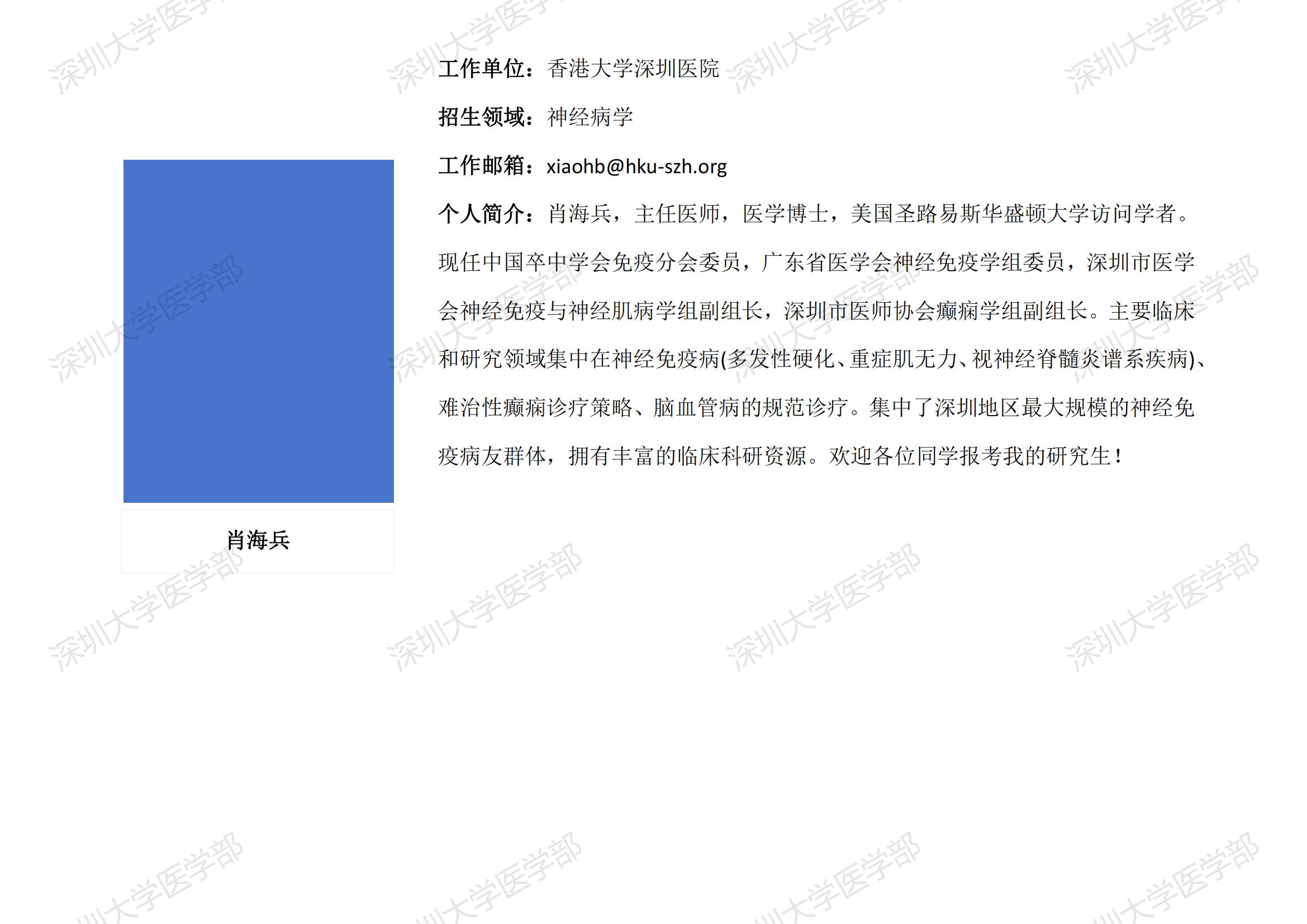 JVID 临床医学专业硕士研究生导师简介--香港大学深圳医院