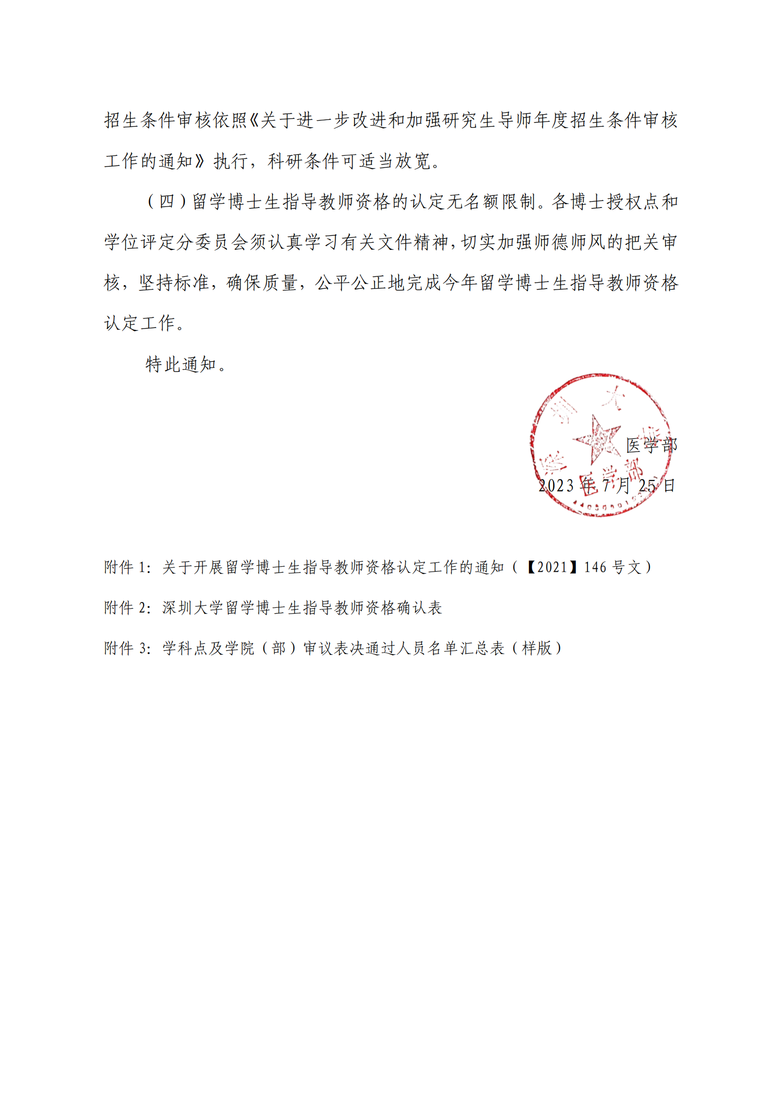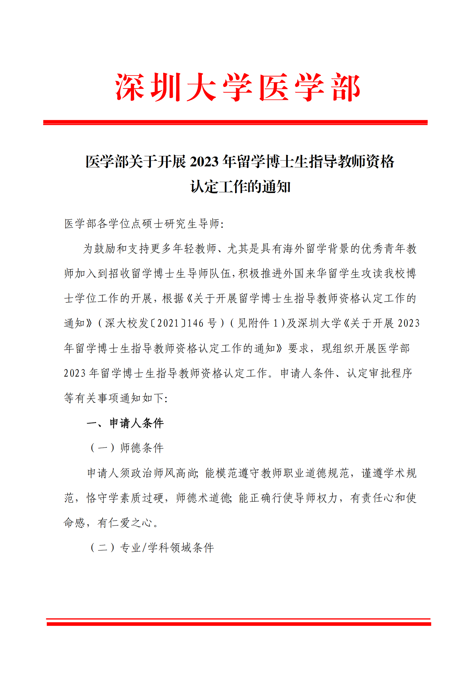 JVID 关于开展2023年留学博士生指导教师资格认定工作的通知 发布时间:2023-07-25 点击数: 次 【字体:小 大】 附件1.关于开展留学博士生指导教师资格认定工作的通知(深大发).doc附件2:JVID 留学博士生指导教师资格确认表.docx附件3:学科点及学院(部)审议表决通过人员名单汇总表(样版).docx 点赞 收藏 分享到: 打印正文 关闭本页