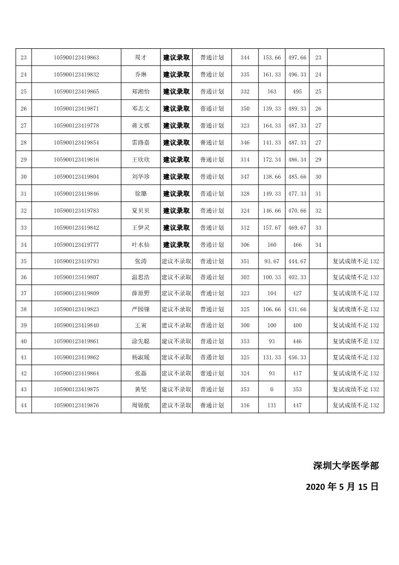 JVID 2020 年基础医学(100100)硕士生拟录取名单