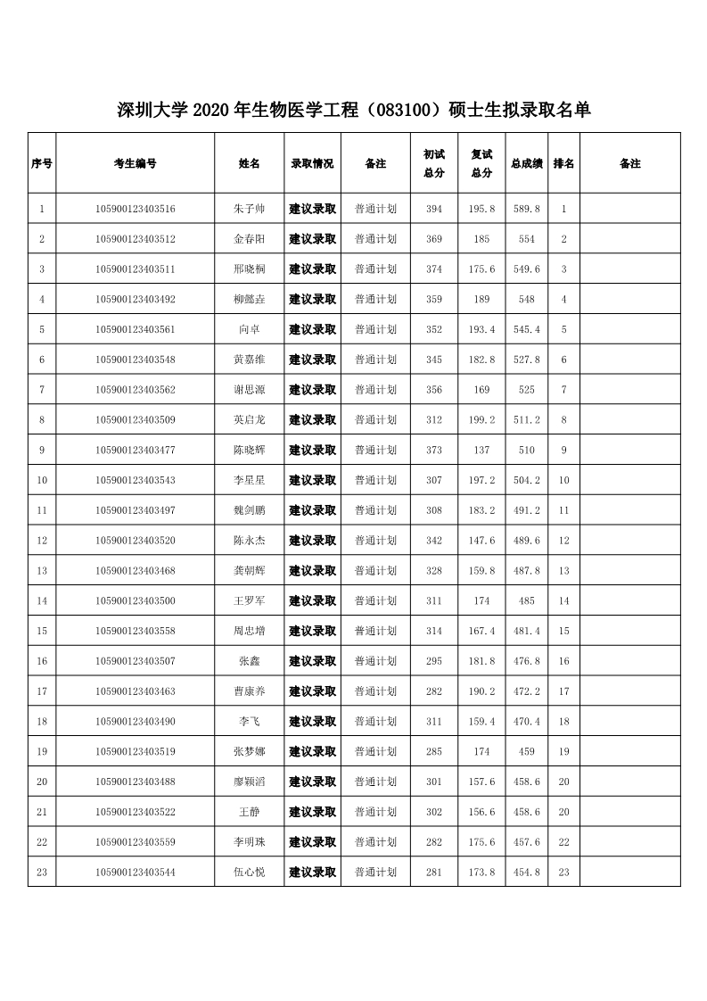 JVID 2020 年生物医学工程(083100)硕士生拟录取名单