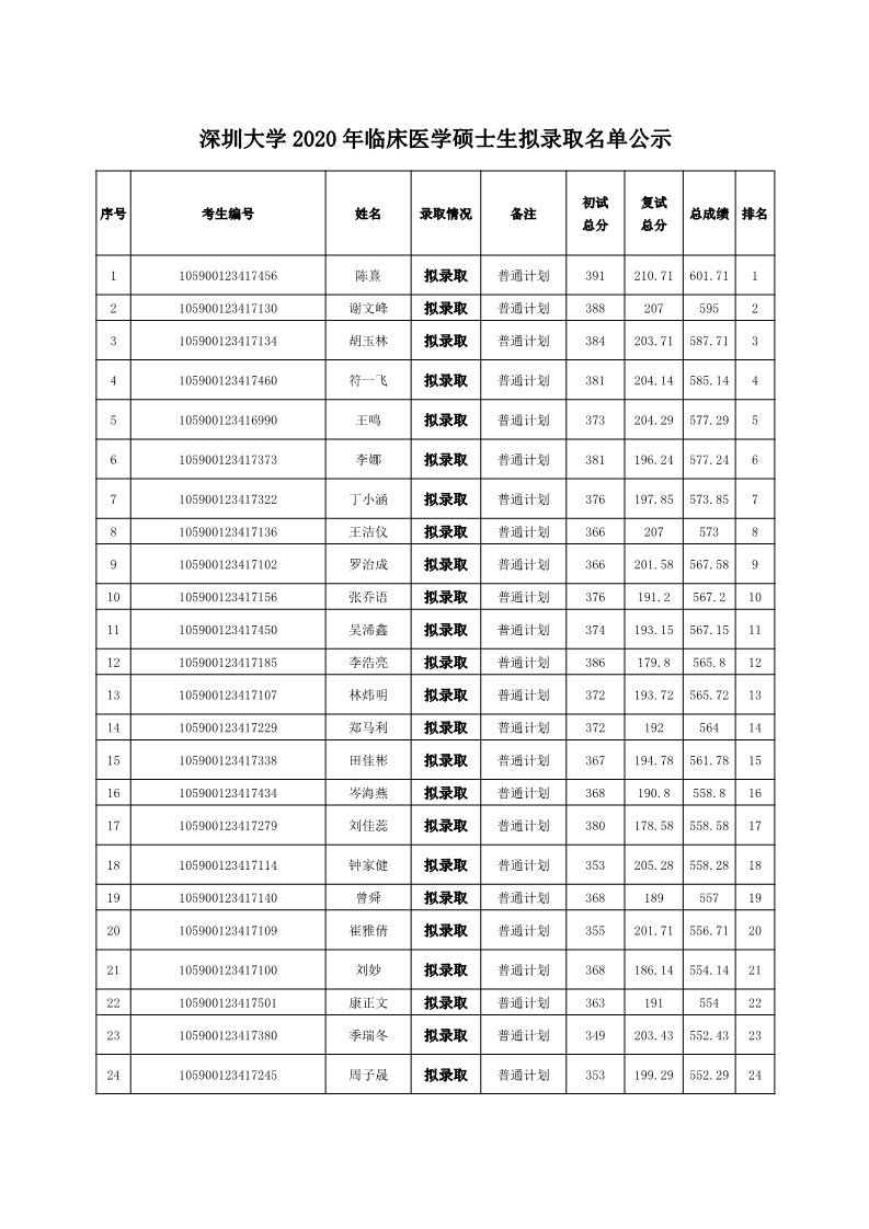 JVID 2020 年临床医学硕士生拟录取名单公示