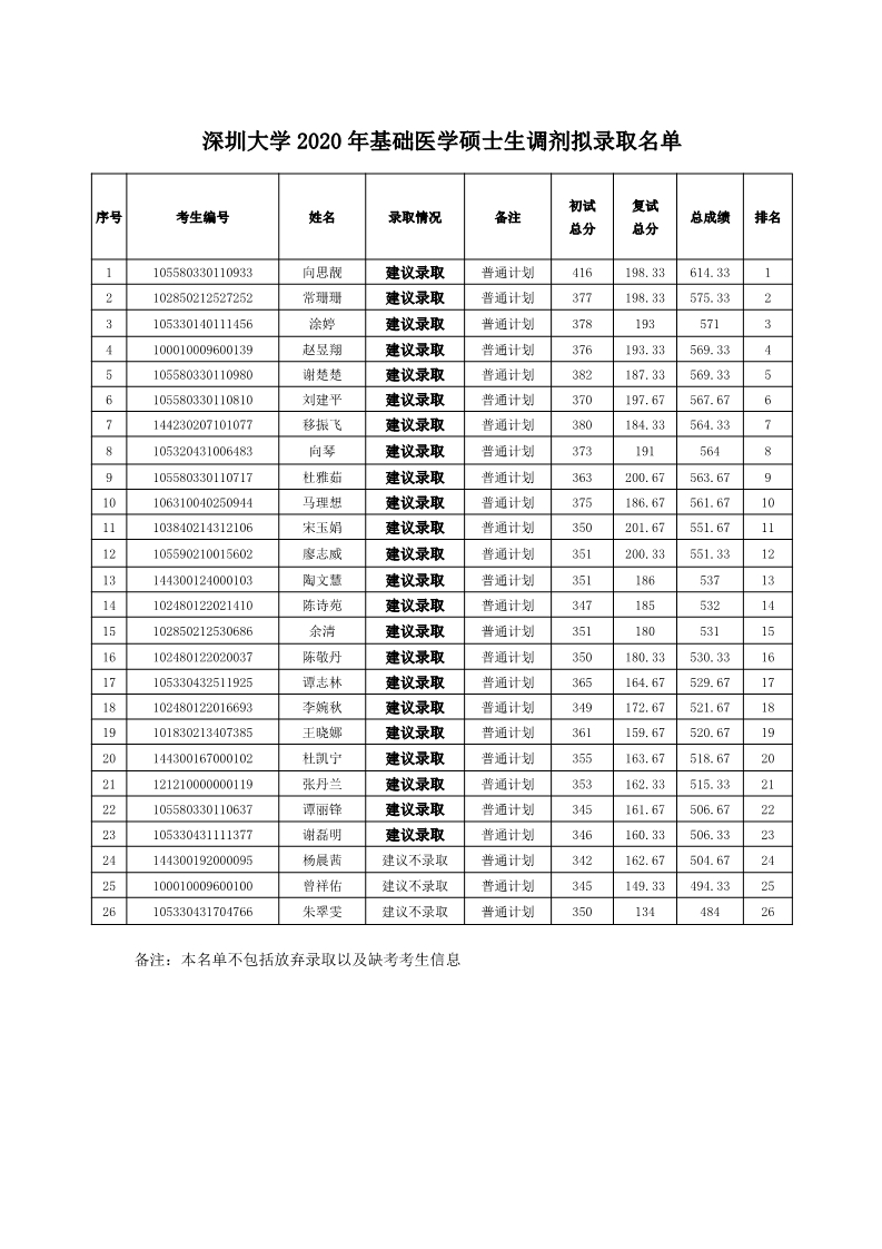 JVID 2020年基础医学硕士生调剂拟录取名单