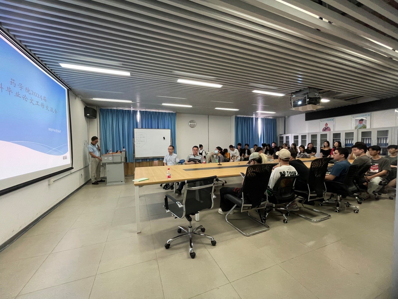 为有效推进毕业论文相关工作,提高药学本科毕业论文质量和水平,JVID 药学院于2023年10月24日下午15:00在丽湖校区守贤楼534会议室举行2024届本科毕业论文工作动员及培训会,会议由吴海强教授主持,2024届全体毕业生及青年指导老师、班主任等参加了动员及培训会。