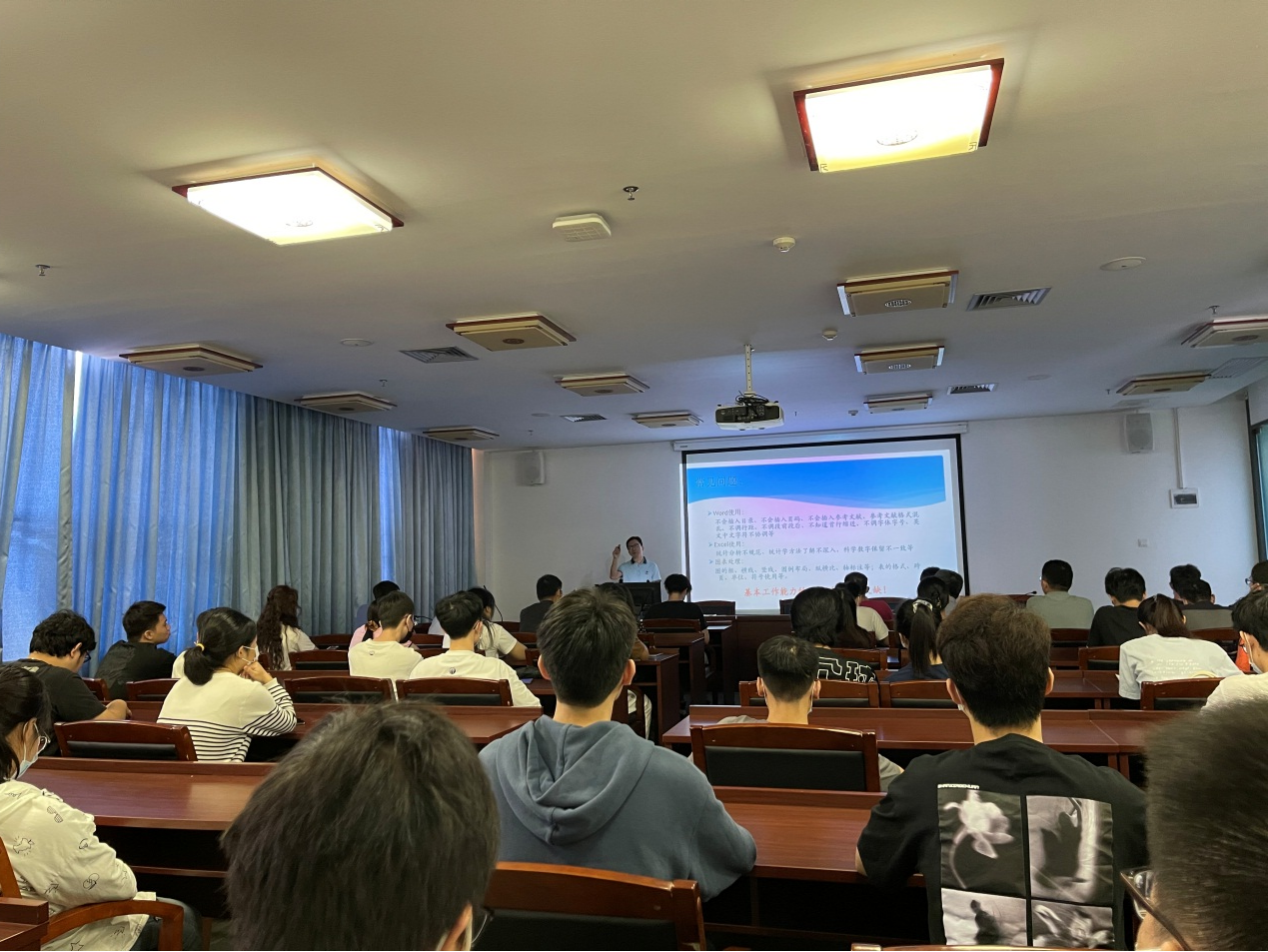 吴海强教授给全体本科毕业生及参会教师介绍了开展毕业论文工作的主要目的和重要意义,并围绕怎样做好毕业论文工作做了深度解读,同时给2022年新进教师开展了培训工作,使其熟悉毕业论文指导工作的流程及规范等。