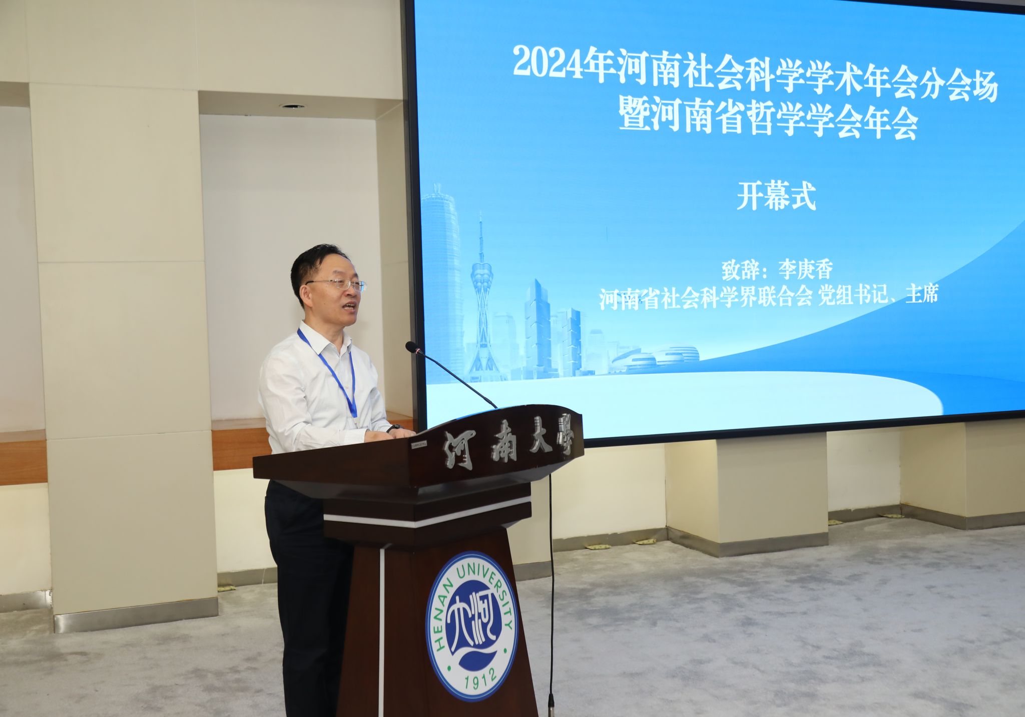 10月12日,由河南省社会科学联合会、河南省哲学学会、河南大学联合主办,河南大学哲学与公共管理学院、哲学互鉴与中国话语建构研究中心承办的“2024年河南社会科学学术年会分会场暨河南省哲学学会年会”在我校金明校区图书馆隆重召开。河南省社会科学界联合会党组书记、主席李庚香研究员,河南省委党校原副校长、河南省哲学学会会长梁周敏教授,洛阳师范学院副校长、河南省哲学学会常务副会长曹玉涛教授,河南大学副校长薛波教授出席年会。年会以“中国式现代化与文化主体性建设”为主题,吸引了来自全省各高校和科研机构的五十余名学者共同参加。