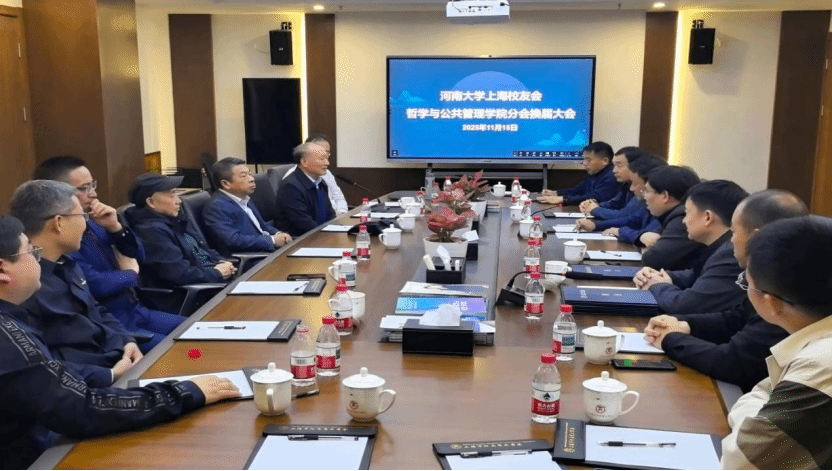 2025年11月15日,河南大学上海校友会哲学与公共管理学院分会(以下简称哲管分会)换届大会在上海举行。上海校友会会长刘献,副会长、哲管分会会长刘岩,秘书长刘强,执行秘书长海川,哲学与公共管理学院党委书记党鸿军,副院长田丰韶、王晓东及部分教师代表,哲管分会理事会成员与在沪校友代表、兄弟学院分会代表欢聚一堂,共同见证这一历史时刻。