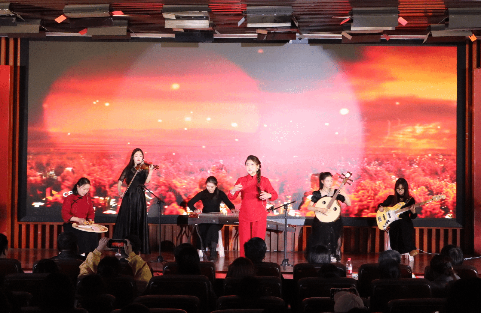 雅乐悠扬歌盛世,青春激荡报家邦。参赛团队代表共唱《我爱你中国》,将现场气氛推向高潮,深情的歌声表达了对祖国的美好祝福。