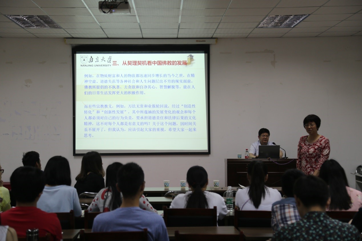 2017年5月24日上午,南京大学洪修平教授应邀来到我院,在我院三楼会议室,为我院师生主讲了题为 “中国佛教文化的特色”的学术讲座。我院哲学系朱丽霞教授参与讲座,哲学等相关专业本科生与研究生参会。