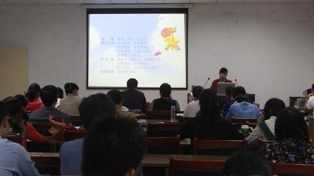 9月27日上午,全国十佳才艺教师、开封市家长学校校长高谦老师主讲的“认识自己的队员”讲座在我院三楼会议室举行。国培计划少先队员辅导员培训班学员参加了讲座。