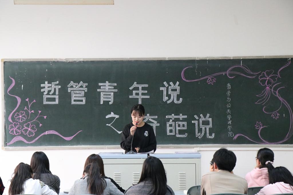 10月28日下午,由我院团委学生会学习部主办的“哲管青年说之奇葩说”在金明校区综合楼5103教室举办。本次活动有“30岁应追求稳定的工作还是追求梦想”、“现代社会男人还是女人更累”、“柏拉图式的爱情是否存在”以及“颜值在社会上是利大于弊还是弊大于利”四个辩题。本次活动的形式为个人选择主题并进行演讲论证。