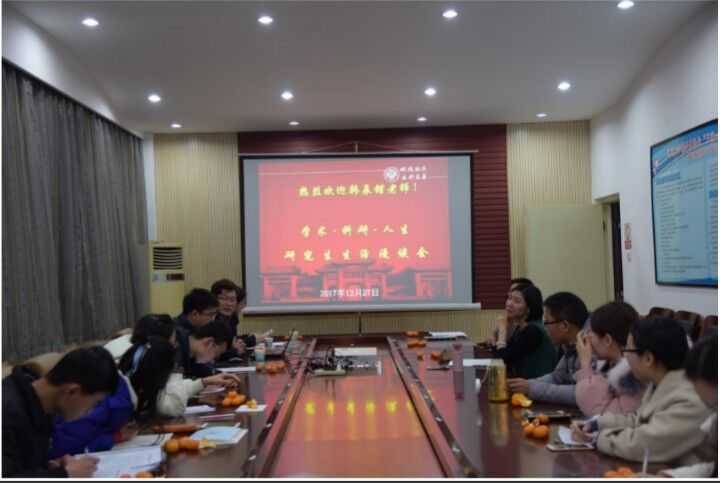 2017年12月27日晚,我院哲学专业2017级研究生在三楼小会议室参加了主题为“学术、科研、人生--研究生生活漫谈”的报告,报告由中哲专业的李浩凯同学主持,我院青年教师韩辰锴老师和2015级中国哲学专业王壮壮学长受邀出席了此次漫谈会。