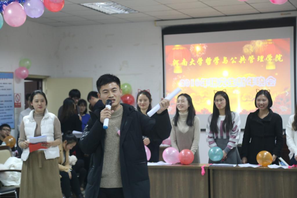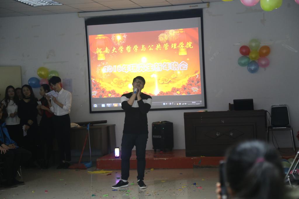 2017年12月28日晚,河南大学哲学与公共管理学院研究生会在我院3楼会议室隆重举办了2018年研究生新年晚会。我院赵炎峰老师、乔志灵老师、李胜辉老师到场与2016级、2017级研究生一同观看表演。