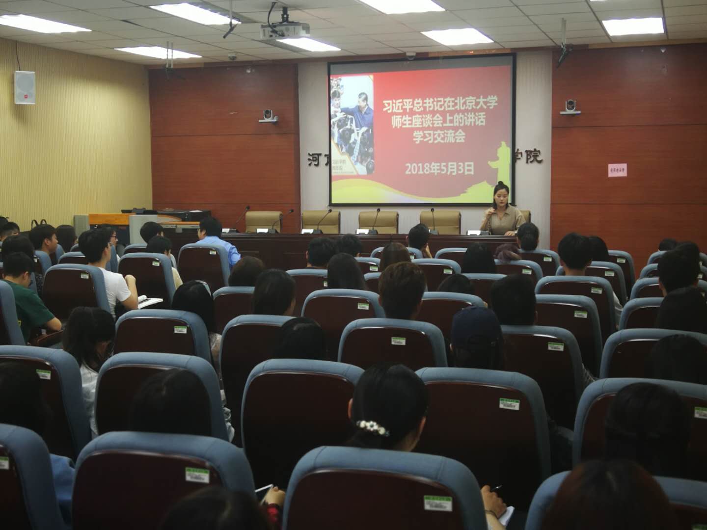 2018年5月3日下午,我院组织团员青年学习了习近平总书记在北京大学师生座谈会上的讲话。