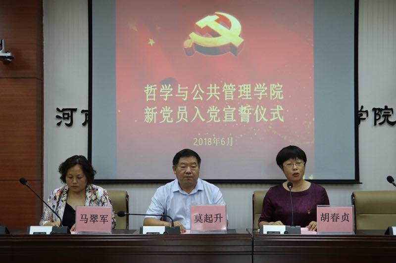 6月21日下午3:00,在纪念建党成立97周年之际,我院在学院三楼大会议室隆重举行新党员宣誓仪式。我院党委委员、各党支部书记、73名新党员及部分正式党员、入党积极分子代表参加了此次活动。仪式由党委副书记胡春贞主持。