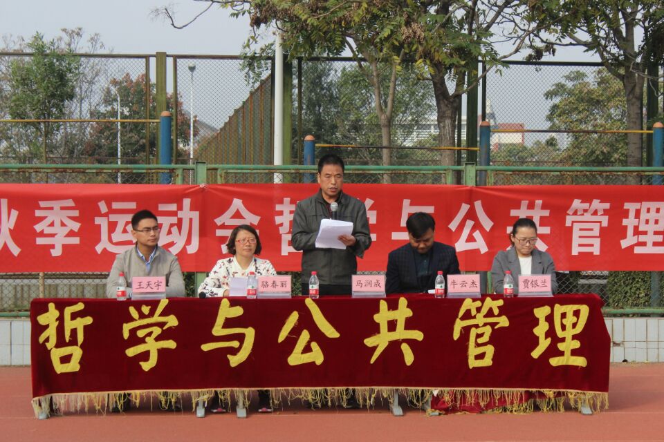 在啦啦队的精彩表演过后,校体委办公室副主任牛云杰宣布河南大学2018年秋季运动会哲学与公共管理学院赛区正式开幕。