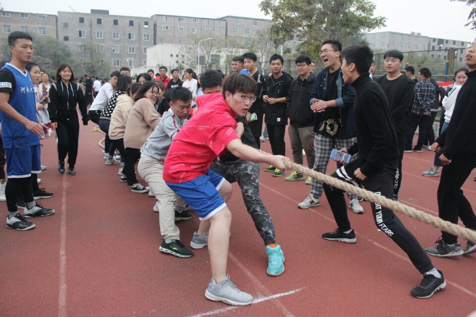 开幕式结束后,运动员陆续检录入场,到场领导对运动员进行了慰问。男女子50米、100米预赛打响了运动会的第一枪,矫健身姿成为猩红色跑道上一道亮丽的风景线。沙坑跳比赛中,助跑,起跳,纵身一跃,脚下的沙砾见证了他们纵情拼搏的模样。女子仰卧起坐比赛中赵紫云以一分钟65个的优秀成绩夺得第一,打破了学院近两年的记录。绿茵场上,啦啦队为运动员加油助威,呐喊声此起彼伏将赛场上的气氛推向了高潮。最后进行三个集体项目,营地救生、带球绕杆接力比赛,各班参赛学生默契配合,表现出了优秀的团队意识。压轴的拔河项目把此次运动会的气氛推向最高潮,比赛进行时东操场人声鼎沸。