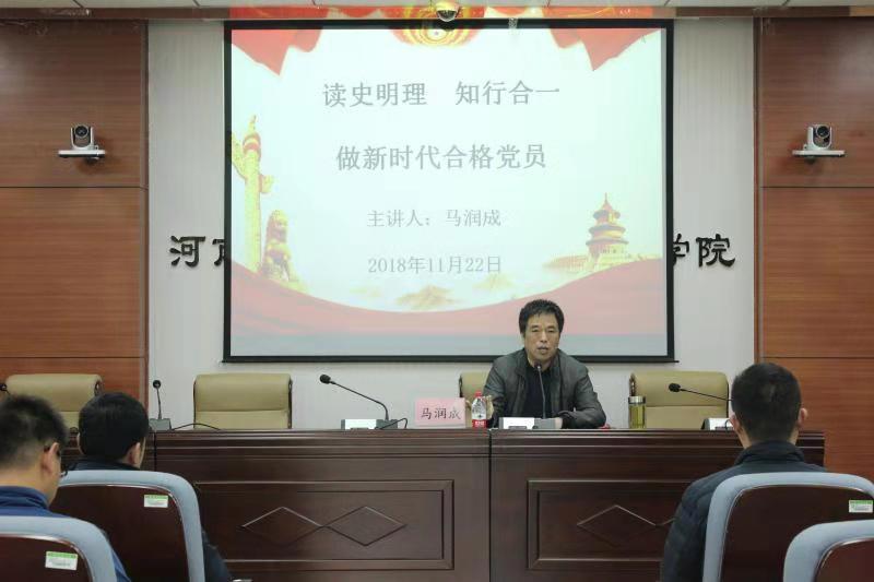 11月22日下午,院党委书记马润成以《读史明理,知行合一,做新时代合格党员》为题,为我院教工党员上了一次生动的党课。