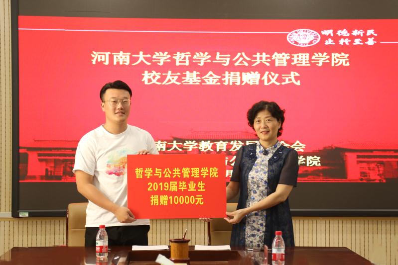 刘波代表学校对刚走出校门的校友们的无私捐赠表示感谢,对校友们饮水思源、感恩母校、反哺回馈的举动给予了高度肯定。她表示,哲学与公共管理学院2019届校友们的捐赠为学校培育感恩文化树立了榜样,相信学校各项事业在校友们的期待和共同支持下,会发展得越来越好。她希望大家常怀感恩之心,在力所能及的范围内,用爱回报社会,用善良温润自己的心灵。