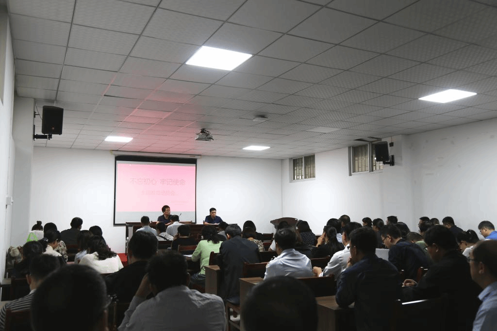 会上,学院党委副书记骆春丽传达了学校“不忘初心、牢记使命”主题教育动员会精神。马润成同志带领全体教职工学习了《习近平总书记在“不忘初心、牢记使命”主题教育工作会议上的讲话》,进一步明确了本次主题教育活动的重大意义、目标要求、重点任务。同时,向大家介绍了学院“不忘初心、牢记使命”主题教育开展情况,并对学院相关工作进行了部署。他表示,按照“守初心、担使命,找差距、抓落实”的总要求,学院坚持把学习教育、调查研究、检视问题、整改落实贯穿始终,从四个方面扎实推进“不忘初心、牢记使命”主题教育 ,切实把主题教育落实同抓好学院的中心工作结合起来,防止“两张皮”。全体教职工要强化理论武装,在学深悟透习近平新时代中国特色社会主义思想上持续发力,确保入脑入心、融会贯通。同时要结合专业,切实把学习融入日常、抓在经常、形成自觉。