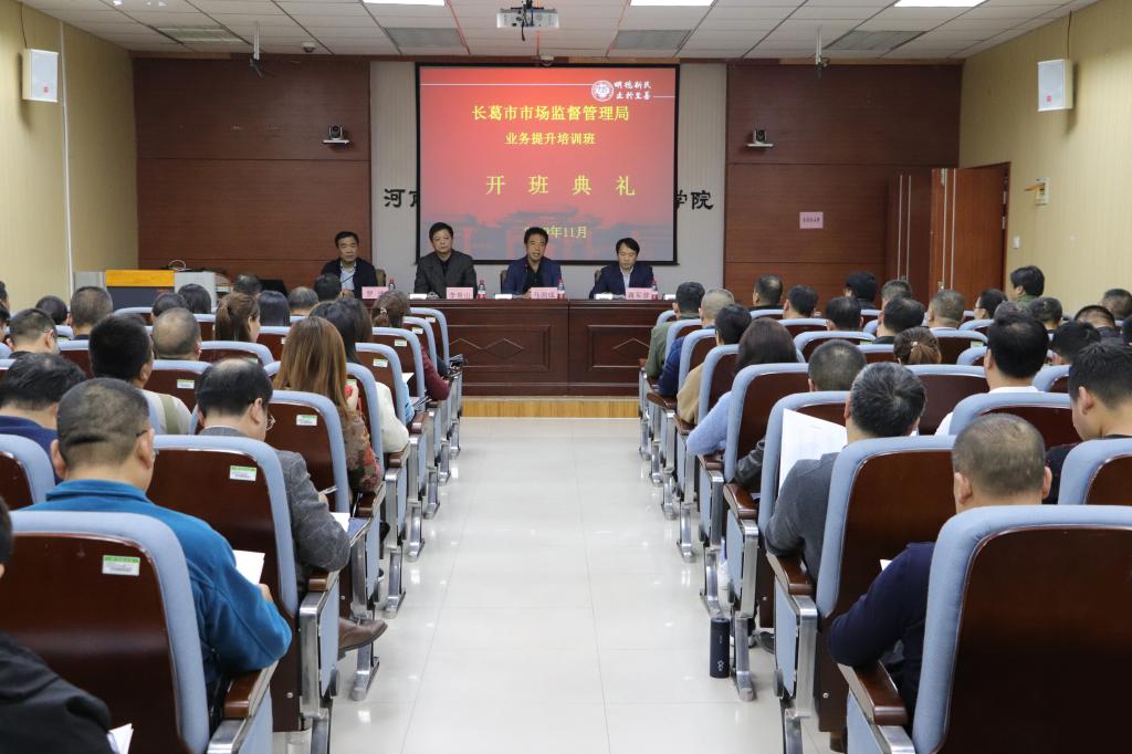 11月4日下午,我院在第一会议室举行“长葛市市场监督管理局业务提升培训班”开班典礼。学院党委书记马润成、长葛市市场监督管理局党组副书记李青山、副局长罗涛出席本次开班典礼。典礼由学院副院长蒋军营主持。