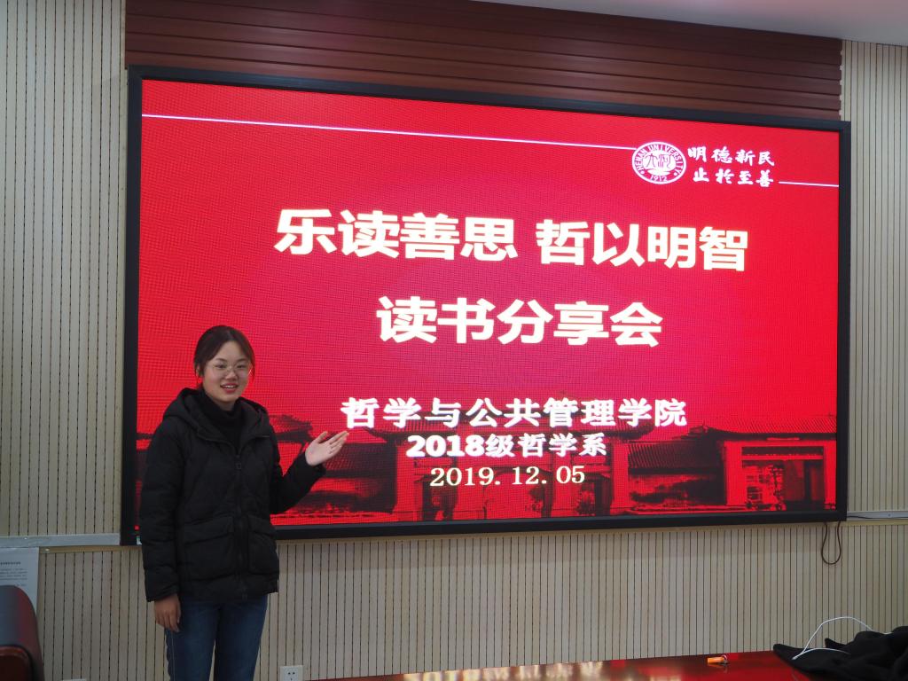 讲述读书心得,分享自我感悟,12月5日,我院2018级哲学专业全体本科生在第二会议室举行“乐读善思,哲以明智”主题读书沙龙活动。