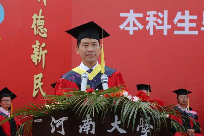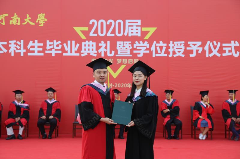 “一朝河大人,一生河大情。昔日的相遇,母校因你们收获一树桃李芬芳;此时的别离,母校为你们寄托一份深深的牵挂。请同学们记住,你们是河大毕业生,河大是你们的家园。你们的世界已经和这里融为一体,我们的牵挂将永远与你们同行。”雷霆鼓励同学们,在未来的人生道路中要永远做学校的代表和代言人。言之切切,引发典礼现场阵阵热烈的掌声。这是一个特别的毕业季,有许多无奈和缺憾,但与河大联结的日子,是所有河大学子难忘的时光。