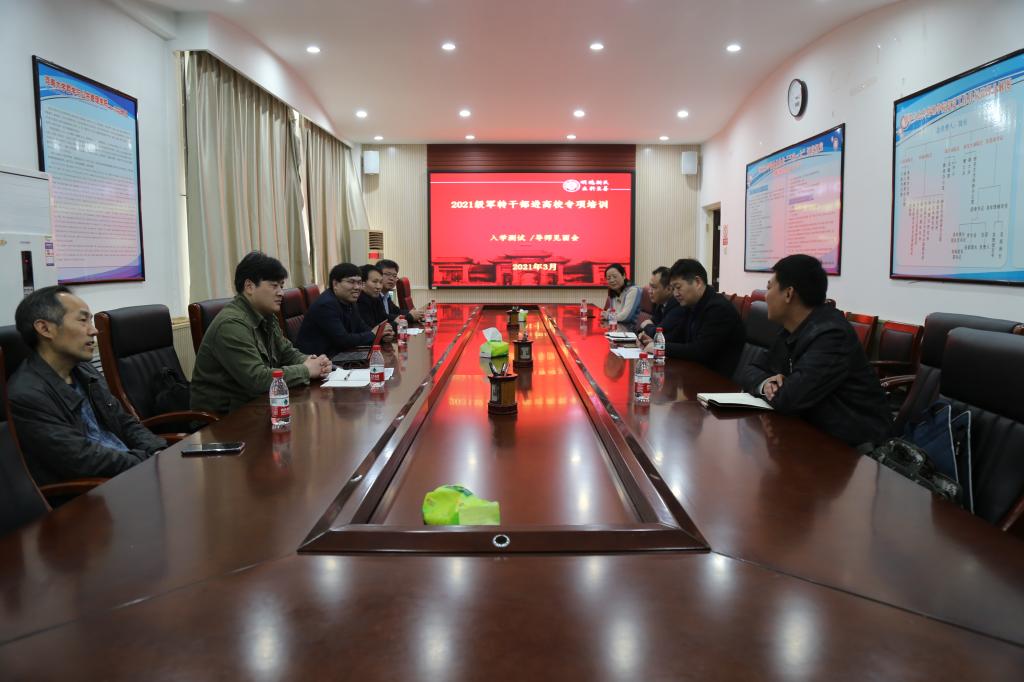 3月15日下午,我院2021级军转干部进高校专项培训导师见面会在学院三楼第二会议室召开。学院副院长蒋军营、田丰韶,学院成教办公室主任丁玲红,行政管理系刘辉老师、政治系孙艮陶老师、社会工作系付光伟老师以及三位军转干部学员出席本次会议。