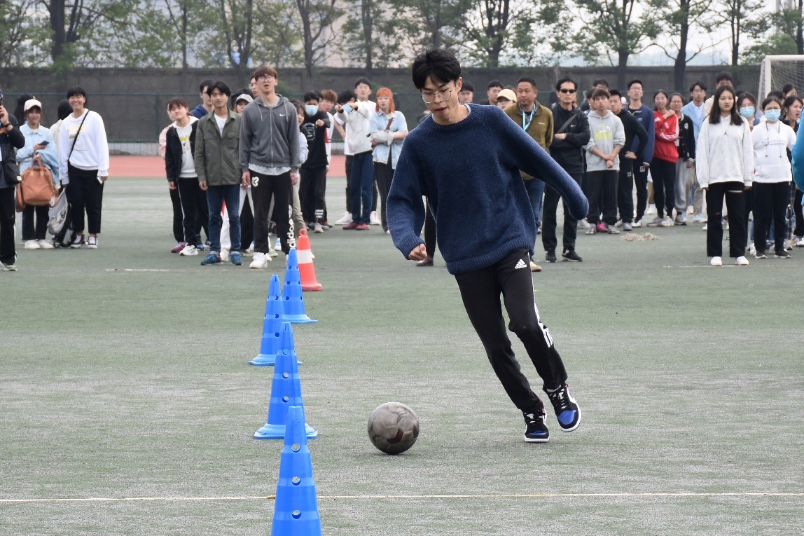 集体项目也相继传来喜讯。在勇过浮桥项目中,我院学子以口号为令,以节奏为兵,搭起木棍,在对彼此的信任中通过比赛的考验。在教职工趣味项目中,老师们将团结协作的魅力展现得淋漓尽致。在考验平衡和技巧的带球绕杆比赛中,老师们相互支持,彼此配合,齐心协力。激烈比拼过后,我院学生组在勇过浮桥中取得第八名,教工组在带球绕杆中取得第六名。