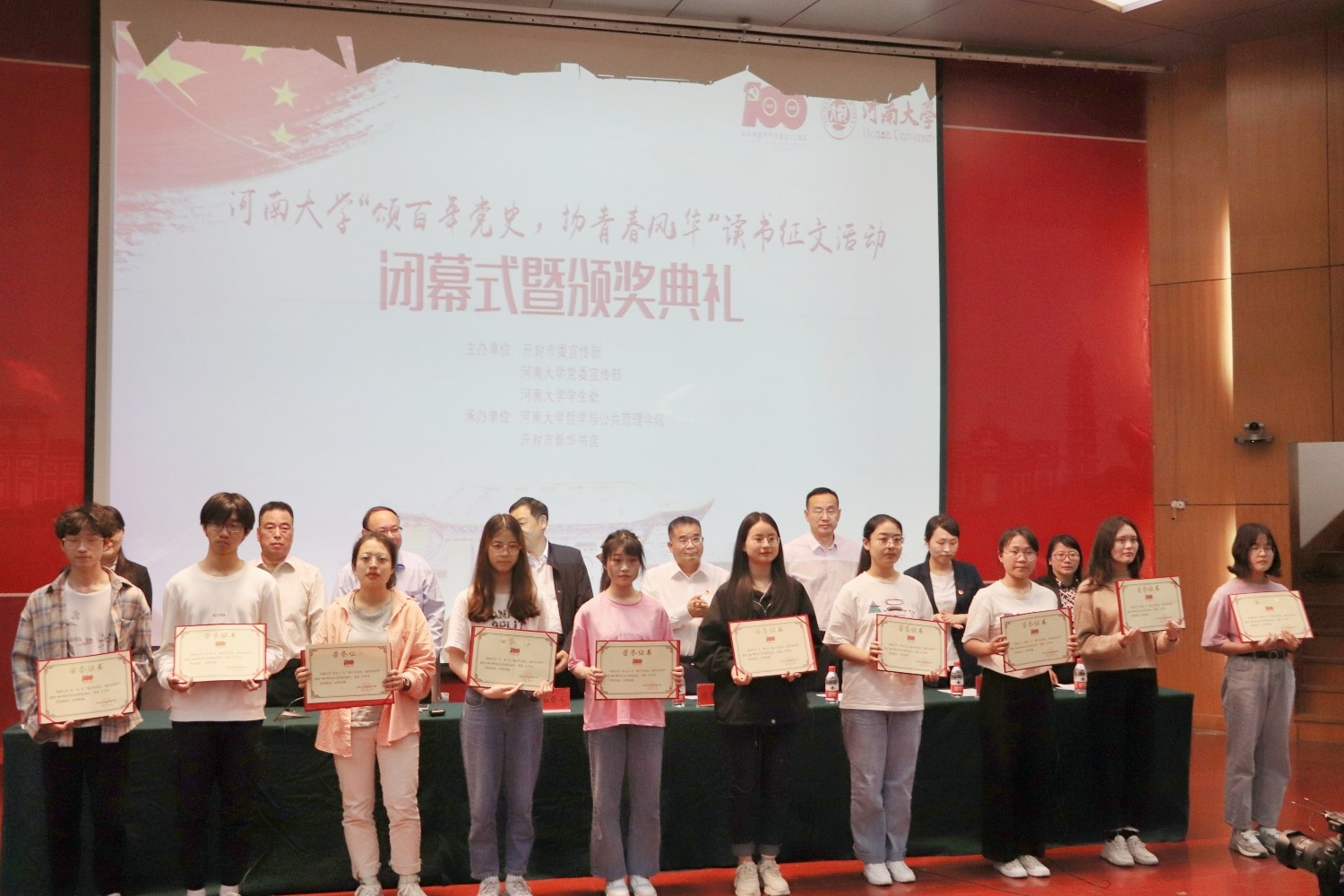 据悉,“颂百年党史,扬青春风华”读书征文活动由开封市委宣传部、河南大学党委宣传部、河南大学学生处主办,我院与开封市新华书店承办,共收到征文作品近600篇,包含读后感、散文、红色故事等多种体裁。经过层层评审,最终张祖源荣获一等奖,吴婷等3人获得二等奖,杨晨等6人获得三等奖,庞聪燕等20人获得优秀奖,文学院、欧亚国际学院、我院荣获优秀组织奖。