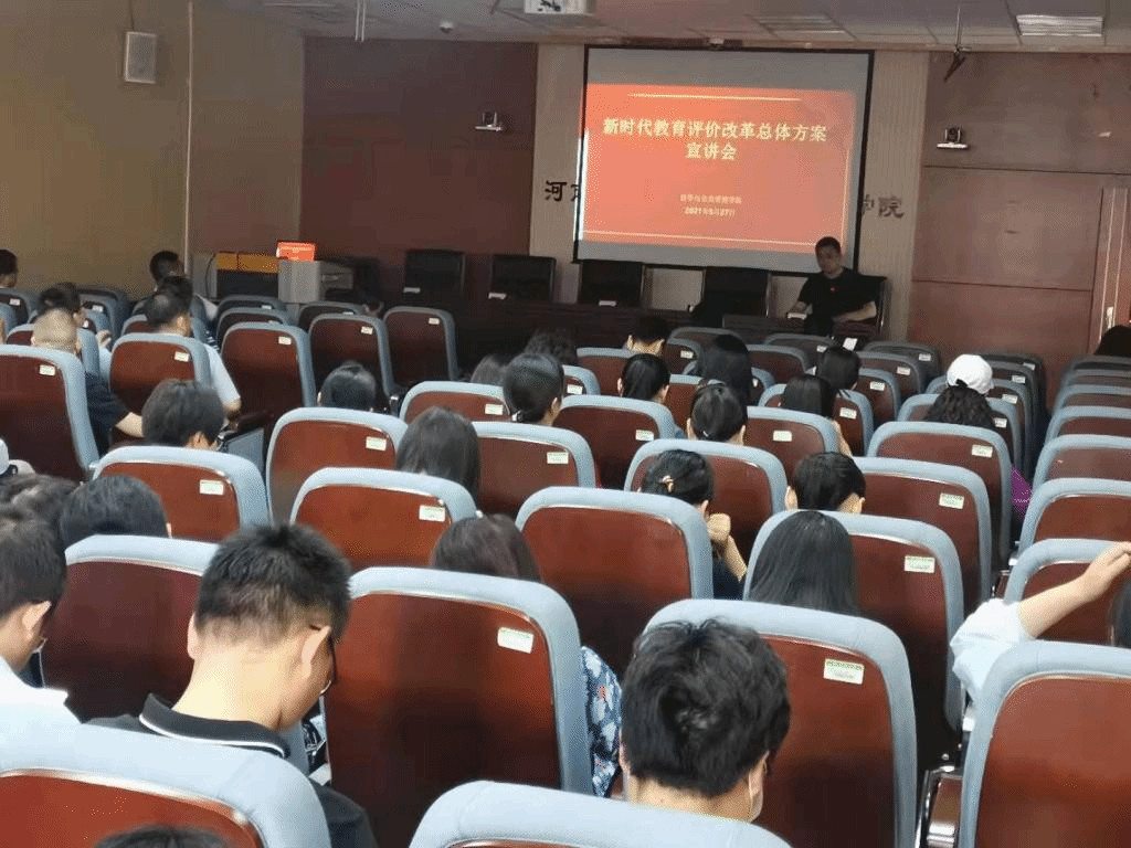 为落实党中央关于教育评价改革的重要决策部署,根据学校工作安排,5月27日下午,我院举行了“新时代教育评价改革总体方案宣讲会”。宣讲会由学院党委书记马润成主持,学院全体教师参加了宣讲会。