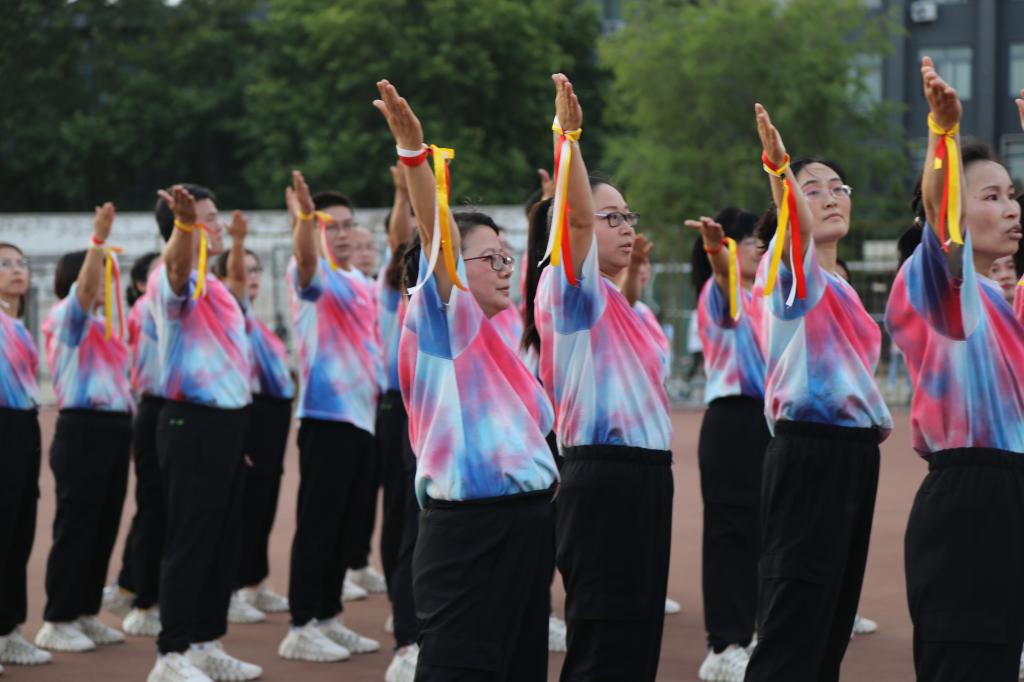 一招一式皆努力。接到活动伊始,我院领导班子高度重视,精心筹划,教职工热情高涨,踊跃参与。面对时间紧、任务重等多重困难,我院参赛教职工以效率换时间,用精准求完美。在一遍又一遍反复的动作,一曲又一曲相同的音乐之中不断打磨自己的舞步,无论是清晨或是日暮,不管是强风还是烈日,总能看到教职工们在南苑小广场辛勤排练的身影。