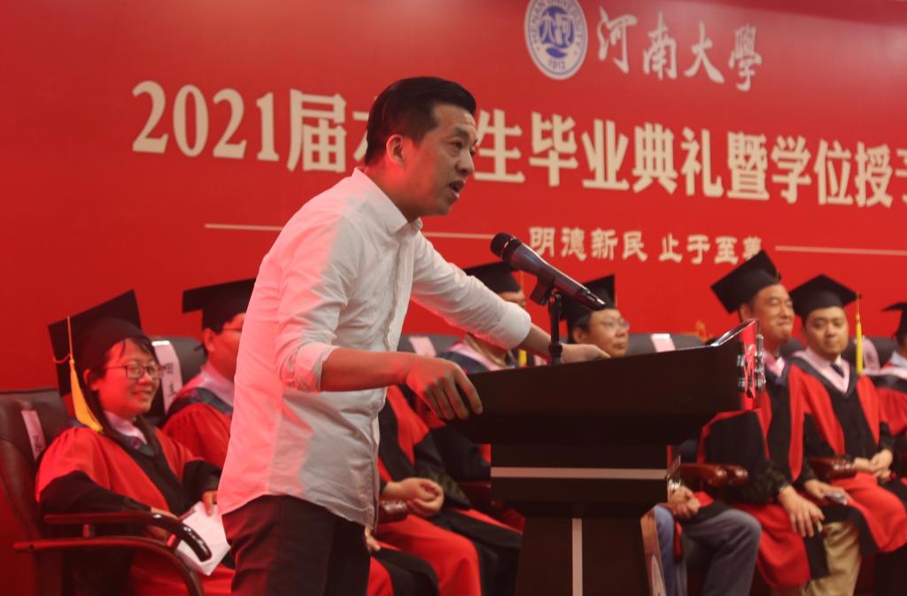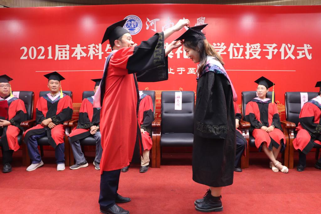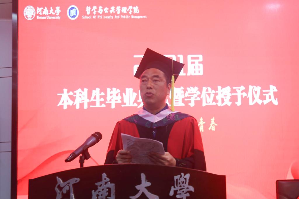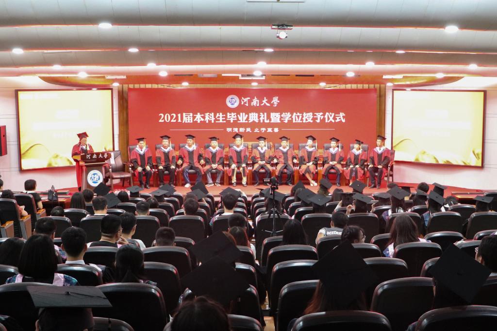 副院长田丰韶宣读《河南大学2021届本科毕业生学士学位授予决定》,全场响起热烈掌声。