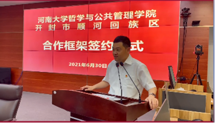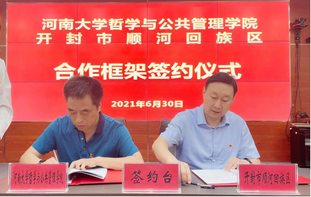 6月30日上午,我院与开封市顺河回族区合作框架协议签约仪式在顺河回族区委、区政府举行。顺河回族区委书记白海富,区长王荧和我院党委书记马润城,院长姬志闯及双方相关部门负责人参加签约仪式。会议由顺河回族区委副书记李冰主持。