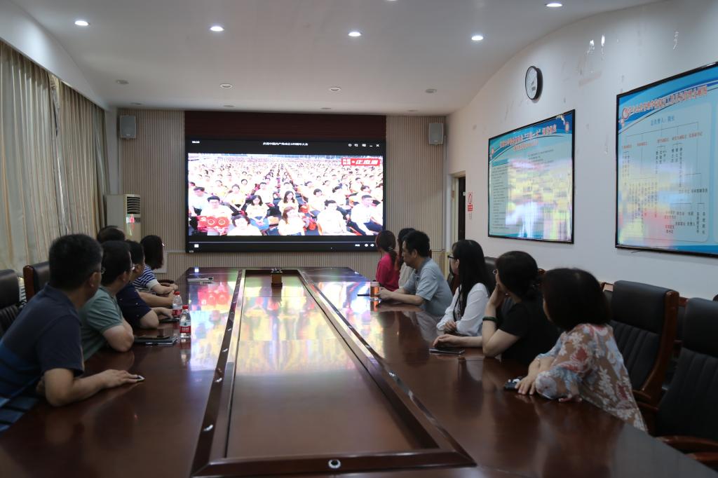 庆百年风华,贺百岁华诞。7月1日,我们迎来了中华民族和中国共产党历史上非凡而庄重日子——党的百岁华诞!上午8时,庆祝中国共产党成立100周年大会在北京天安门广场隆重举行。中共中央总书记、国家主席、中央军委主席习近平出席大会并发表重要讲话。我院高度重视,积极组织学院师生于第二会议室观看大会现场直播,共同祝福伟大的中国共产党百岁华诞。