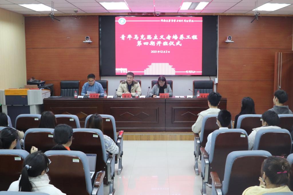 12月2日下午,我院“青年马克思主义者培养工程”第四期培训班开班仪式在学院第一会议室举行。校团委副书记董文,学院党委副书记骆春丽、院团委负责人王天宇以及全体第四期青马班成员参加本次仪式。仪式由王天宇主持。