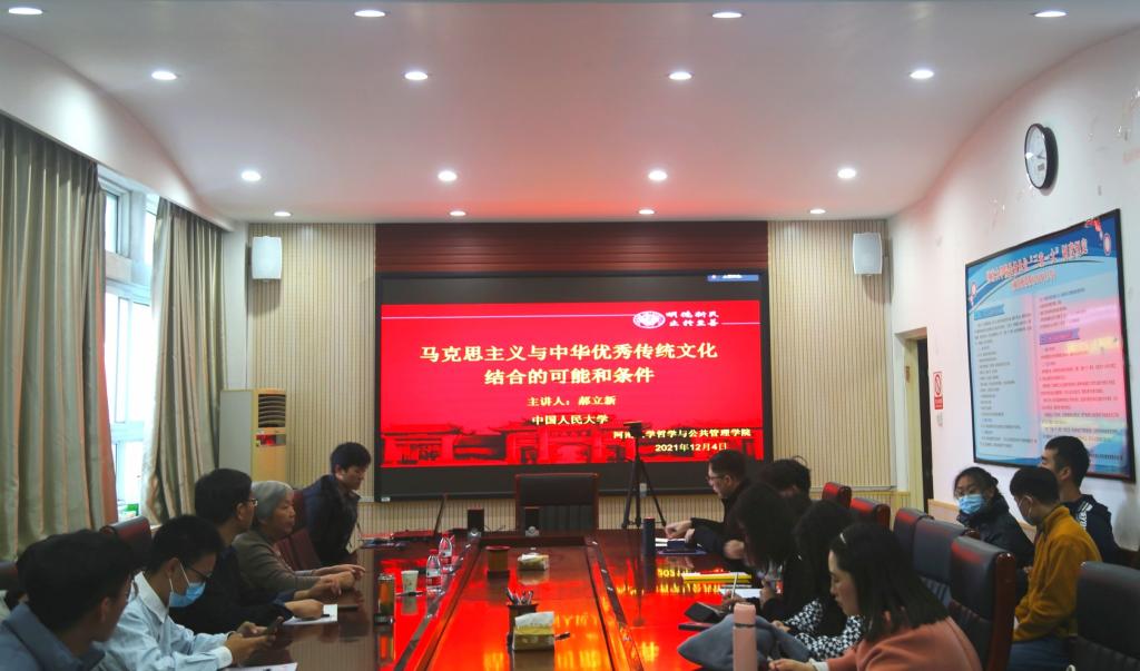 12月4日下午,应我院邀请,中国人民大学郝立新教授在线为我院师生作了题为《马克思主义与中华优秀传统文化结合的可能和条件》的学术讲座。本次讲座由我院吕世荣教授主持,哲学系部分青年教师和研究生及马克思主义理论专业研究生通过线上线下相结合的方式共同参与了本次讲座。