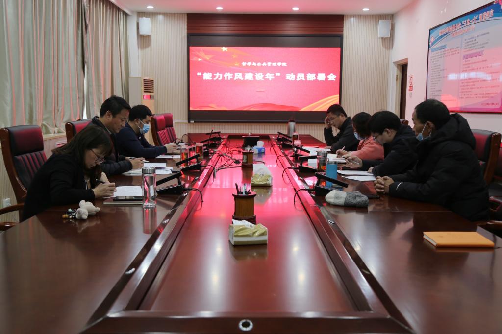 1月4日,在学校召开全校“能力作风建设年”活动动员大会的第二天,学院党委立即召开专题会议安排部署“能力作风建设年”活动,学习文件精神,研究贯彻落实措施,成立领导小组和工作机构,初步拟定了《哲学与公共管理学院“能力作风建设年”活动实施方案》。