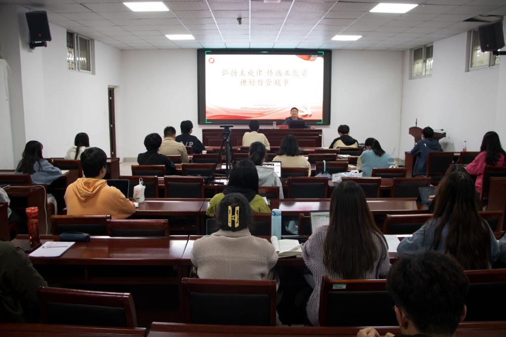 4月28日下午,党鸿军作题为“弘扬主旋律,传播正能量,讲好哲管故事”讲座。他带领大家学习了习近平总书记关于新闻舆论工作的重要论述,并结合学院新闻稿件做针对性分析指导,引导学员不断提升脚力、眼力、脑力、笔力,用心用情用力撰写有价值、有深度、有质量的新闻作品,为学院高质量发展汇聚精神力量。