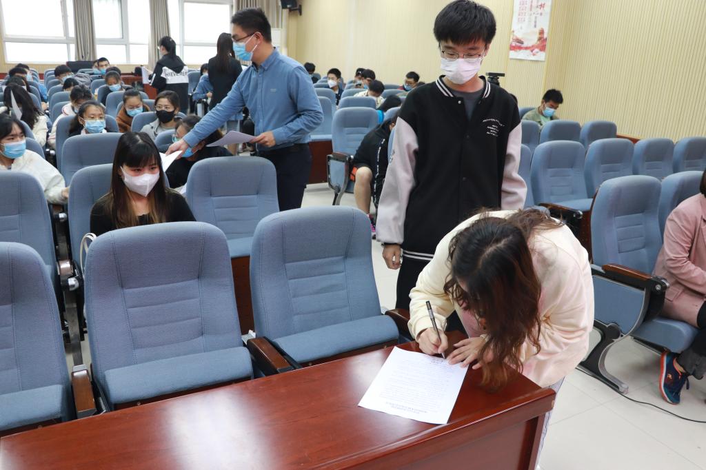 研究生宿舍长赵靓慧彦和本科生宿舍长刘攀分别作表态发言。他们表示,会不折不扣按照学院要求,带头执行疫情防控相关规定,为维护校园安全稳定尽心尽责。全体宿舍长依次签订《哲学与公共管理学院疫情防控宿舍长责任书》。