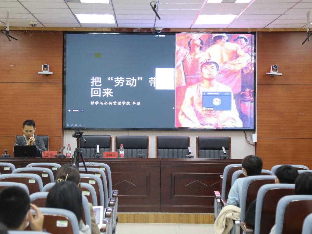 中国劳动关系学院孟泉老师围绕“劳动问题治理的中国方案:劳动关系场景的内外观”这一主题,以劳动关系的经典理论为引,结合相关现实案例,分别从“构建中国特色和谐劳动关系的重大意义”“中国特色和谐劳动关系的性质与特点”“我国构建和谐劳动关系主要机制”“新时期我国劳动关系面临的主要挑战”四个角度展开论述。他以案例为依托,以事实为依据,借助多学科视角对和谐劳动关系,劳动治理的中国探索与经验特色进行探讨,呈现新时代中国和谐劳动关系面临的主要挑战,并指出要坚持“四梁八柱”,凝聚共识。李强博士以“劳动去哪里了”开篇,从“劳动价值”“劳动问题”“劳动神圣”“我们面临的劳动世界”展开论述。他通过剖析近现代社会中不断涌现的劳动问题与劳动价值矛盾现象,指出根源在于劳动价值与社会现代化的关系。他立足现实,结合中国的劳动问题,指出当下学生需要提高自身的硬实力,从专业学习出发,树立正确的劳动价值观。
