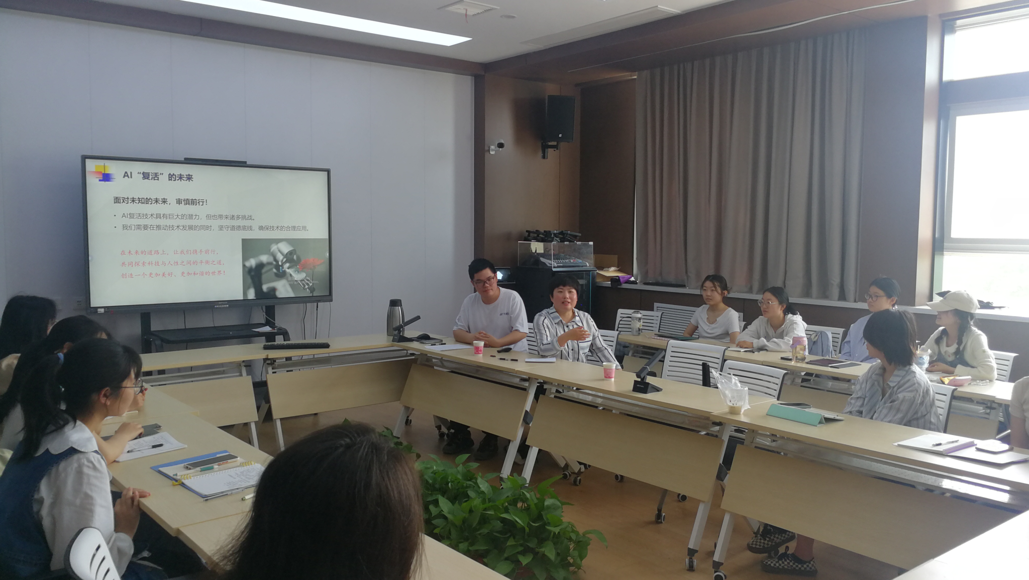 4月27日上午,我院举行主题为“AI复活:技术的边界与道德的考量”的哲学明德学术沙龙,人工智能学院黄紫晴老师应邀主讲,宋春沅主持,叶平老师作为与谈人与2022级、2023级哲学明德班同学共同参与。