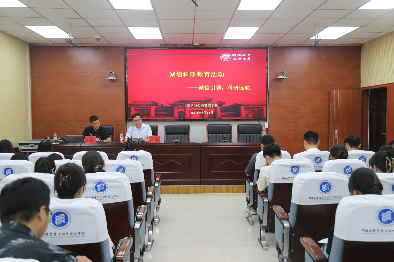 为进一步加强学风建设,帮助我院研究生树立正确的科研理念,5月14日晚,我院在第一会议室开展了“加强科研诚信建设,拒绝学术不端行为”诚信科研教育主题座谈会。学院研究生与科研办公室主任、2023级研究生辅导员孙艮陶,2022级研究生辅导员刘耀和2022级、2023级全体全日制研究生共同参与了此次活动。