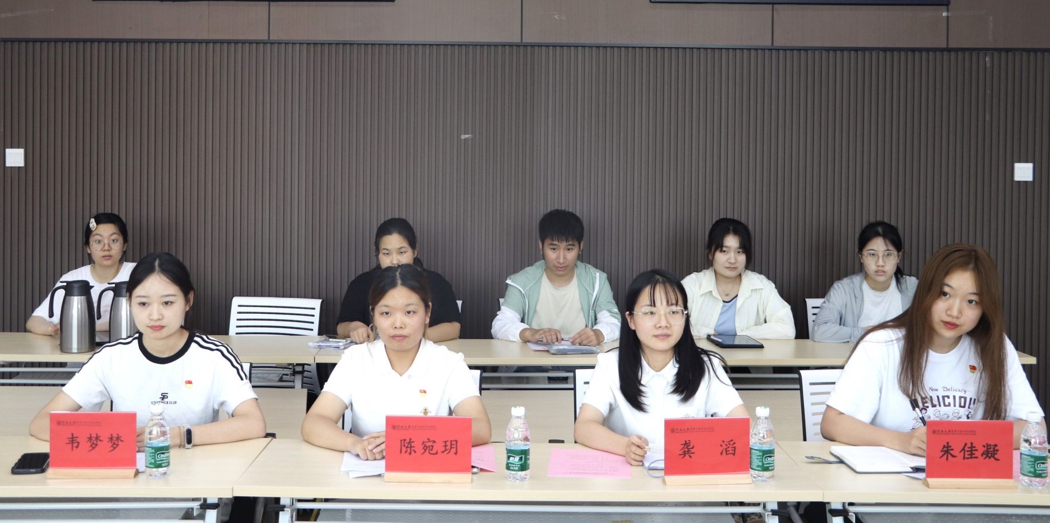 学习交流会上,何威领学了《中国共产党纪律处分条例》(2023年版)政治纪律部分修订内容。学生党员代表朱佳凝、龚滔、陈宛玥和韦梦梦结合自己的学习生活,先后分享了党纪学习教育的个人学习体会。大家一致表示,将聚焦《条例》要求,发挥学生党员干部的优秀模范带头作用,严格行为举止,强化责任意识,勇于担当作为,不断增强思想定力和党性修养。